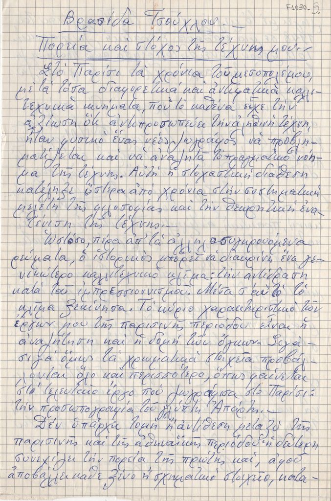 Spiteris Tonis (1910 - 1986) ; Miliadis Giannis (1895 - 1975) ; Papanoutsos Evangelos (1900 - 1982) ; Vassiliou Spyros (1902 - 1985) ; Evangelidis Dimitrios E. ; Maggiorou Loukia (1914 - 2008) ; Tassos (Anastasios Alevizos) (1914 - 1985) ; Chatzidakis Manolis (1909 - 1998) ; Hatzikyriakos-Ghika Nikos (1906 - 1994) ; Katsimpalis, Georgios (1899 - 1978) ; Moralis Yannis (1916 - 2009) ; Gounaropoulos Georgios (1889 - 1977) ; Papaloukas Spyros (1892 - 1957) ; Spyropoulos Yannis (1912 - 1990) ; Kalligas Marinos (1906 - 1985) ; Δημήτρης Ψαθάς (1907 - 1979) ; Kapralos Christos (1909 - 1993) ; Frantziskakis Errikos (1908 - 1958) ; Sochos Antonios (1888 - 1975) ; Bouzianis Giorgos (1885 - 1959) ; Vrasidas Tsouchlos (1904 - 1981) ; Vakalo Giorgos (1902 - 1991) ; Kitsikis Konstantinos ; Georgiadis Andreas, Kris (1892 - 1981) ; Chrysochoidou, Titsa (1906 - 1990) ; Nikos Nikolaou (1909 - 1986) ; Pappas Giannis (1913 - 2005) ; Georgios Kosmadopoulos (1895 - 1967) ; Spahis Angelos (1903 - 1963) ; Μίμης Καραγάτσης (1908 - 1960) ; Άγγελος Θεοδωρακόπουλος (1882 - 1965) ; Π. Τσολάκου ; Αλέκος Πατσιφάς ; Κ. Βασιλειάδης ; Ρένος Κουτσούρης