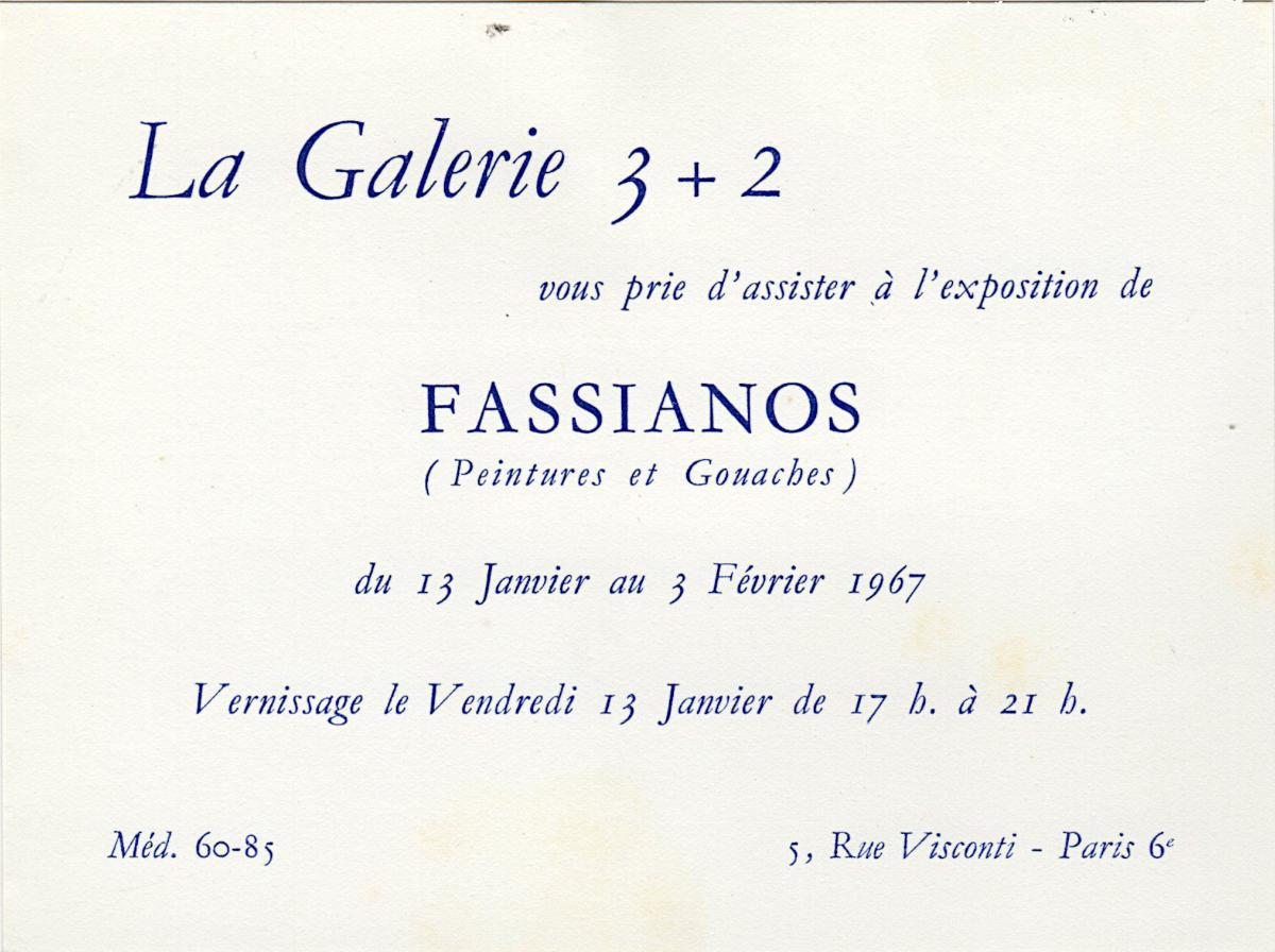 Invitation to the vernissage of a solo exhibition by Alekos Fassianos at the Galerie 3+2 in Paris.