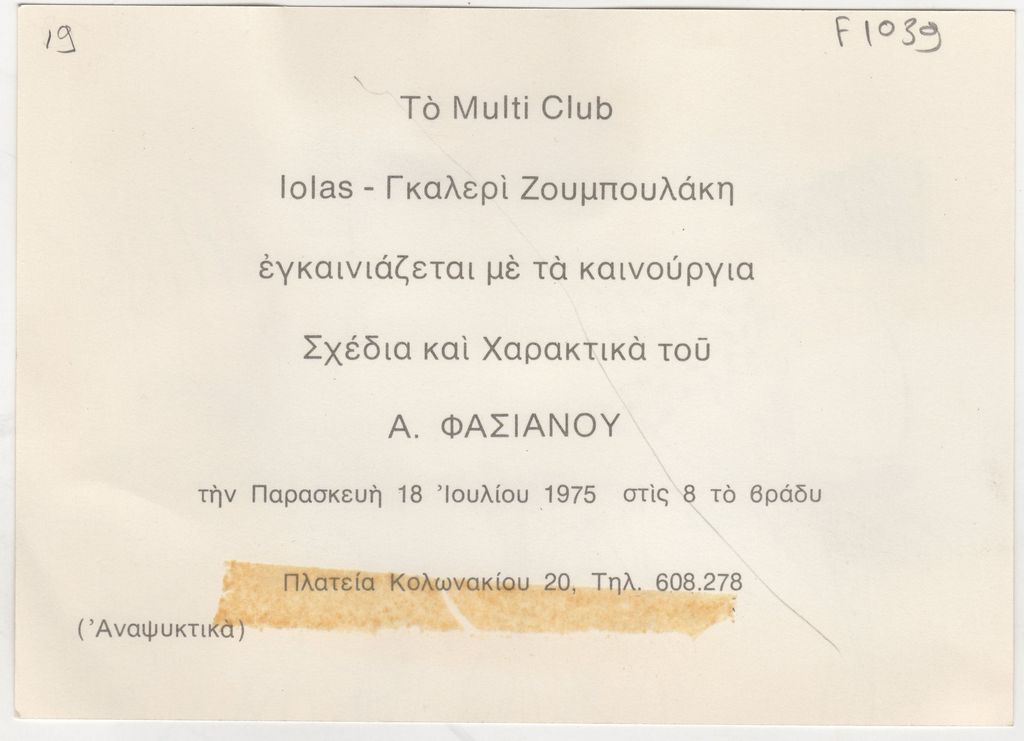Spiteri-Veropoulou Ioanna (1920 - 2000) ; Raftopoulou Bella (1902 - 1992) ; Sakellaridis Dimitris (1912 - 1999) ; Christoforou John (1921 - 2014) ; Fassianos Alekos (1935 - 2022) ; Αντώνης Καραχάλιος ; Tzolaki Rena (1930) ; Santamouris Christos (1948) ; Angelopoulos Aristomenis (1900 - 1990) ; Fokas Yannis (1951) ; Κώστας Χαραλαμπίδης (1946) ; Pierrakos Alkis (1920 - 2017) ; Sperantzas Vassilis (1938) ; Karavouzis Sarantis (1938 - 2011) ; Yulika Lakeridou (1940) ; Maltezos Yannis (1915 - 1987) ; Aristides Patsoglou (1941) ; Γιώργος Σκυλογιάννης ; Ελένη Κριεζή ; Behrakis George (1936) ; Δημήτρης Ράτσικας (1946) ; Pantelias Miltos (1954) ; Harris Lambert ; Βασίλης Δωρόπουλος ; Εριέττα Βορδώνη (1959) ; Λίλη Ελευθερίου ; Κωνσταντίνος Γιαννικούρης