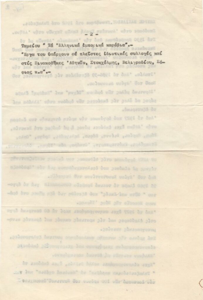 Engonopoulos Nikos (1907 - 1985) ; Semertzidis Valias (1911 - 1983) ; Spiteri-Veropoulou Ioanna (1920 - 2000) ; Vassiliou Spyros (1902 - 1985) ; Hatzikyriakos-Ghika Nikos (1906 - 1994) ; Raftopoulou Bella (1902 - 1992) ; Sikeliotis Giorgos (1917 - 1984) ; Iliopoulou-Rogan Dora (20th century) ; Gaitis Yannis (1923 - 1984) ; Mytaras Dimitris (1934 - 2017) ; Tetsis Panagiotis (1925 - 2016) ; Gravalos Panayiotis (1933 - 2015) ; Grammatopoulos Konstantinos (1916 - 2003) ; Varlamos Giorgos (1922 - 2013) ; Katsoulidis Takis (1933) ; Μάριος Λοβέρδος ; Malamos Kostas (1913) ; Manousakis Giorgos (1914 - 2003) ; Georgios Mavroidis (1912 - 2003) ; Malamou-Mitsea Ioanna (1913 - 2004) ; Preka-Stefanatou Meropi (1934 - 2025) ; Prekas Paris (1926 - 1999) ; Ευάγγελος Τερζόπουλος ; Drakouli Iris (1929)