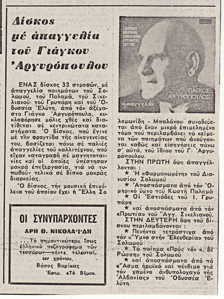 Γιάγκος Αργυρόπουλος - Reciter