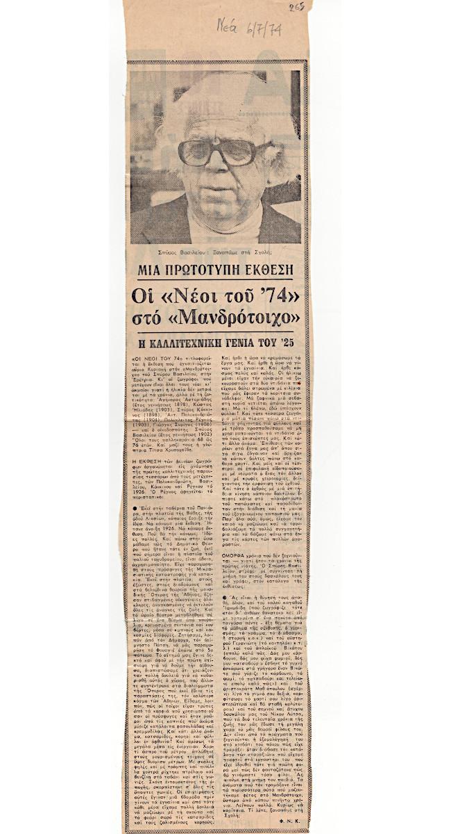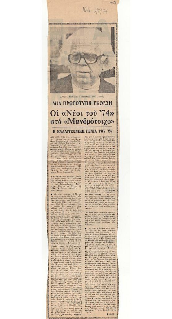 Nikos Engonopoulos (1907 - 1985) ; Semertzidis Valias (1911 - 1983) ; Spiteri-Veropoulou Ioanna (1920 - 2000) ; Vassiliou Spyros (1902 - 1985) ; Hatzikyriakos-Ghika Nikos (1906 - 1994) ; Raftopoulou Bella (1902 - 1992) ; Sikeliotis Giorgos (1917 - 1984) ; Iliopoulou-Rogan Dora (20th century) ; Gaitis Yannis (1923 - 1984) ; Mytaras Dimitris (1934 - 2017) ; Tetsis Panagiotis (1925 - 2016) ; Panayiotis Gravalos (1933 - 2015) ; Konstantinos Grammatopoulos (1916 - 2003) ; Varlamos Giorgos (1922 - 2013) ; Katsoulidis Takis (1933) ; Μάριος Λοβέρδος ; Malamos Kostas (1913) ; Manousakis Giorgos (1914 - 2003) ; Georgios Mavroidis (1912 - 2003) ; Malamou-Mitsea Ioanna (1913 - 2004) ; Preka-Stefanatou Meropi (1934 - 2025) ; Prekas Paris (1926 - 1999) ; Ευάγγελος Τερζόπουλος ; Iris Drakouli (1929)