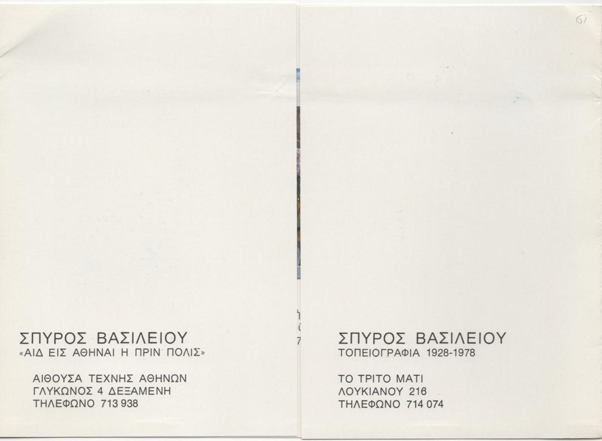 Spyros Vassiliou – Landscape 1928-1978″ and “Spyros Vassiliou – Hail to Athens the former city