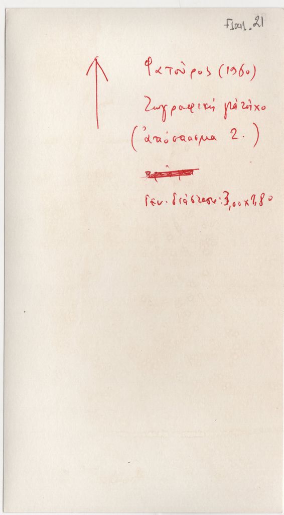 Andreou Kostas (1917 - 2007) ; Fatouros Dimitris (1928 - 2020) ; Spiteri-Veropoulou Ioanna (1920 - 2000) ; Eugène Delacroix (1798 - 1863) ; Touyas Giorgos (1922 - 1994) ; Simossi Gabriela (1926 - 1999) ; Tsoclis Costas (1930) ; Sklavos Yerassimos (1927 - 1967) ; Άγγελος Αγγελόπουλος (1904 - 1995) ; Kontopoulos Alekos (1904 - 1975) ; Mylonas Alex (1923 - 2016) ; Vyzantios Ntikos (1924 - 2007) ; Berto Lardera ; Valsamis Kostas (1908 - 2003) ; Gaitis Yannis (1923 - 1984) ; Le Corbusier (1887 - 1965) ; Georges Mathieu (1921 - 2012) ; Theodoros (Papadimitriou) (1931 - 2018) ; Takis (Vassilakis Panayiotis) (1925 - 2019) ; Victor Vasarely ; Philolaos (Tloupas) (1923 - 2010) ; Kessanlis Nikos (1930 - 2004) ; Kriezi Tita (1930 - 2021) ; Lyberaki Aglaia (1923 - 1985) ; Maltezos Yannis (1915 - 1987) ; Molfesis Iasson (1925 - 2009) ; Paniaras Kostas (1934 - 2014) ; Karras Kostas (1936 - 2012) ; Γιώργος Βαφειάδης