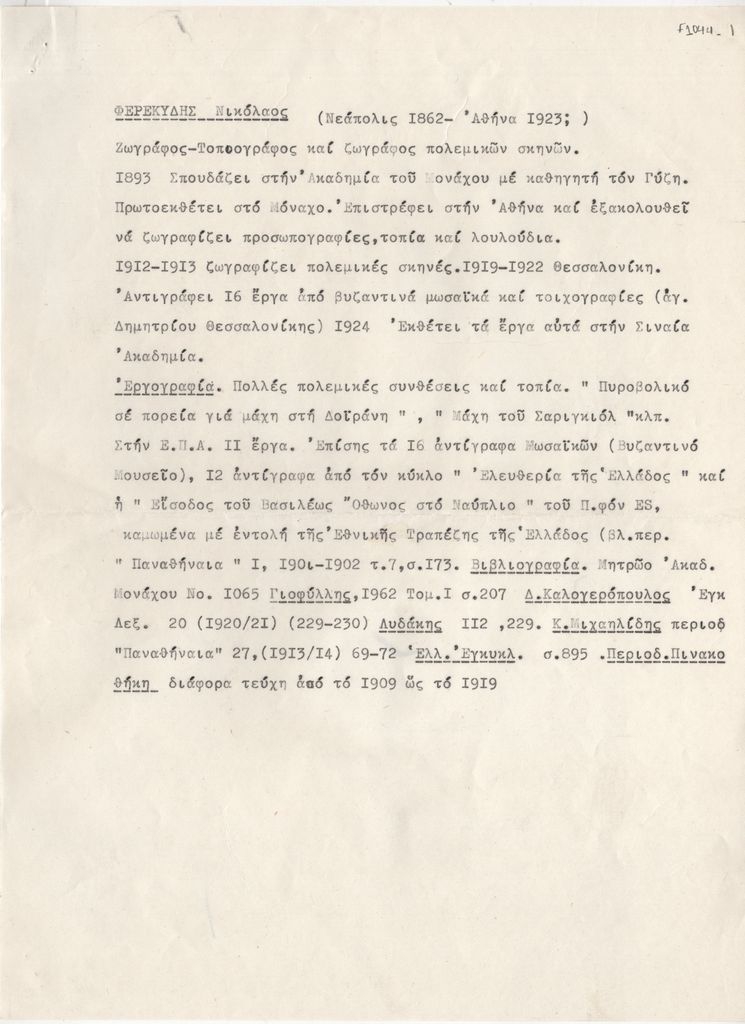 Νικόλαος Φερεκείδης (1862 - 1929) - Artist