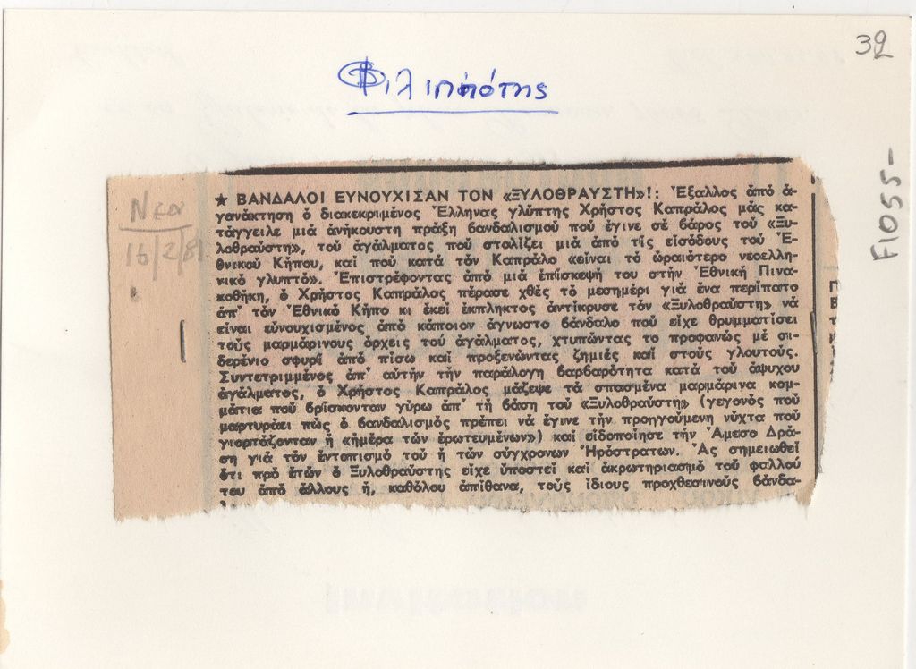 Andreou Kostas (1917 - 2007) ; Spiteri-Veropoulou Ioanna (1920 - 2000) ; Michalea Frosso (1936 - 2001) ; Merkouri Melina (1920 - 1994) ; Christos Kapralos (1909 - 1993) ; Zongopoulos Giorgos (1903 - 2004) ; Achilleas Aperghis (1909 - 1986) ; Kostas Koulentianos (1918 - 1995) ; Christou Chrysanthos (1922 - 2016) ; Vlassis Kaniaris (1928 - 2011) ; Γιώργος Λάππας (1950 - 2016) ; Loucopoulos, Clearchos (1906 - 1995) ; Nausica Pastra (1921 - 2011) ; Ελένη Αποστολοπούλου (1943) ; Χαράλαμπος Δαραδήμος