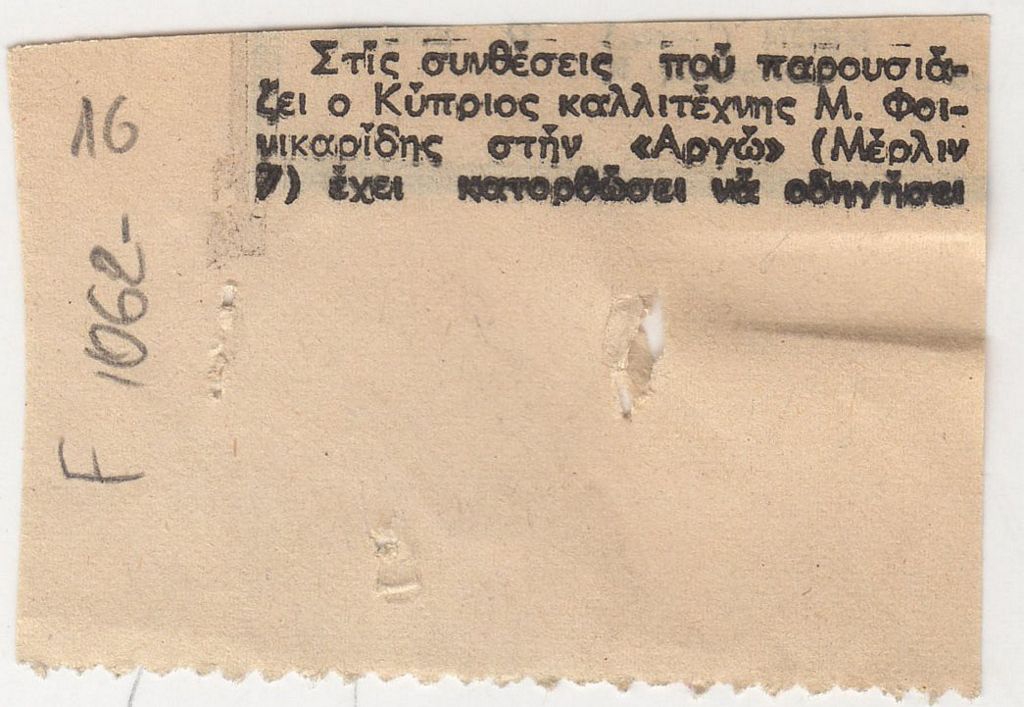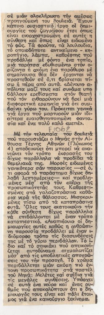 Papaloukas Spyros (1892 - 1957) ; Kontopoulos Alekos (1904 - 1975) ; Mytaras Dimitris (1934 - 2017) ; Mikis Foinikaridis (1940 - 2005) ; Γιούλια Γαζετοπούλου-Σταυρίδου (1935) ; Lazogkas Giorgos (1945 - 2022) ; Μηνάς ; Bouteas Yannis (1941 - 2026) ; Ρίτα Νικήτα ; Στάθης Κούρτης ; Βουβούλα Κωστοπούλου ; Hartmut Boegner (1932) ; Θεοδόσης Παγκαλίδης ; Μαρία-Μαγδαληνή Θεοφάνη