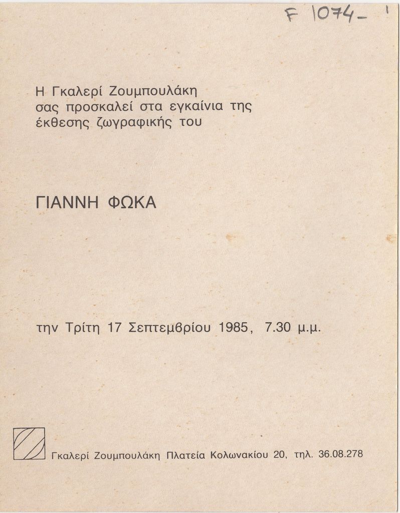 Spiteri-Veropoulou Ioanna (1920 - 2000) ; Vafeiadis Markos (1906 - 1992) ; Raftopoulou Bella (1902 - 1992) ; Pavlos (Dionyssopoulos) (1930 - 2019) ; Christoforou John (1921 - 2014) ; Fassianos Alekos (1935 - 2022) ; Μανώλης Καλλιγιάννης ; Simossi Gabriela (1926 - 1999) ; Tsarouchis Yannis (1910 - 1989) ; Tsoclis Costas (1930) ; (Panagopoulos) Daniel (1924 - 2008) ; Koulentianos Kostas (1918 - 1995) ; Vyzantios Ntikos (1924 - 2007) ; Tzolaki Rena (1930) ; Angelopoulos Aristomenis (1900 - 1990) ; Philolaos (Tloupas) (1923 - 2010) ; Fokas Yannis (1951) ; Κώστας Χαραλαμπίδης (1946) ; Pierrakos Alkis (1920 - 2017) ; Sperantzas Vassilis (1938) ; Karavouzis Sarantis (1938 - 2011) ; Yulika Lakeridou (1940) ; Kindynis Anna (1914 - 2003) ; Kriezi Tita (1930 - 2021) ; Lyberaki Aglaia (1923 - 1985) ; Κώστας Μακρής ; Maltezos Yannis (1915 - 1987) ; Molfesis Iasson (1925 - 2009) ; Κωνσταντίνος Μόραλης ; Bouteas Yannis (1941 - 2026) ; Xenakis Constantinos (1931 - 2020) ; Pastra Nausica (1921 - 2011) ; Gisele Πράσινου ; Tsekoura, Vassiliki (1947) ; Πάνος Ελευθερίου ; Δημήτρης Ράτσικας (1946) ; Νίκος Δαμιανάκης (1920 - 2005) ; Pantelias Miltos (1954) ; Νίκος Τσιώτης ; Εριέττα Βορδώνη (1959) ; Κωνσταντίνος Γιαννικούρης
