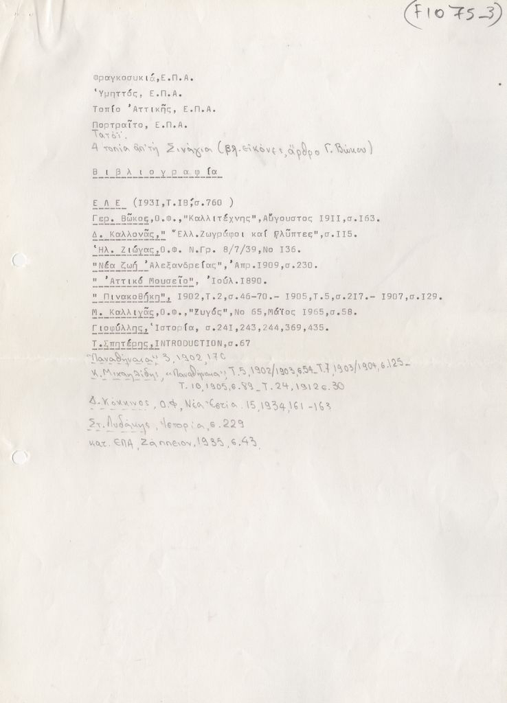 Katraki Vaso (1914 - 1988) ; Vassiliou Spyros (1902 - 1985) ; Eleni Vakalo (1921 - 2001) ; Odysseas Focas (1857 - 1946) ; Δημήτριος Φιλιππότης (1834 - 1919) ; Kalligas Marinos (1906 - 1985) ; Kapralos Christos (1909 - 1993) ; Σπύρος Παναγιωτόπουλος (1894 - 1987) ; Efi Ferentinou (1915 - 1979) ; Pikionis Dimitris (1887 - 1968) ; Vyzantios Periclis (1893 - 1972) ; Παύλος Καλλιγάς ; Thomas Thomopoulos (1873 - 1937) ; Chatzis Vasileios (1870 - 1915) ; Tetsis Panagiotis (1925 - 2016) ; Ioannidis Evangelos (1868 - 1942) ; Lytras Nikiforos (1832 - 1904) ; Mathiopoulos Pavlos (1876 - 1956) ; Miaoulis Andreas (1769 - 1835) ; Ε. Ρως ; Ι. Ιακωβίδης