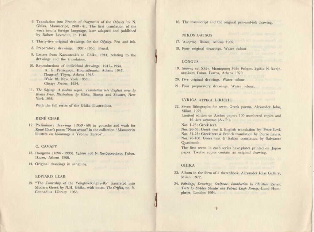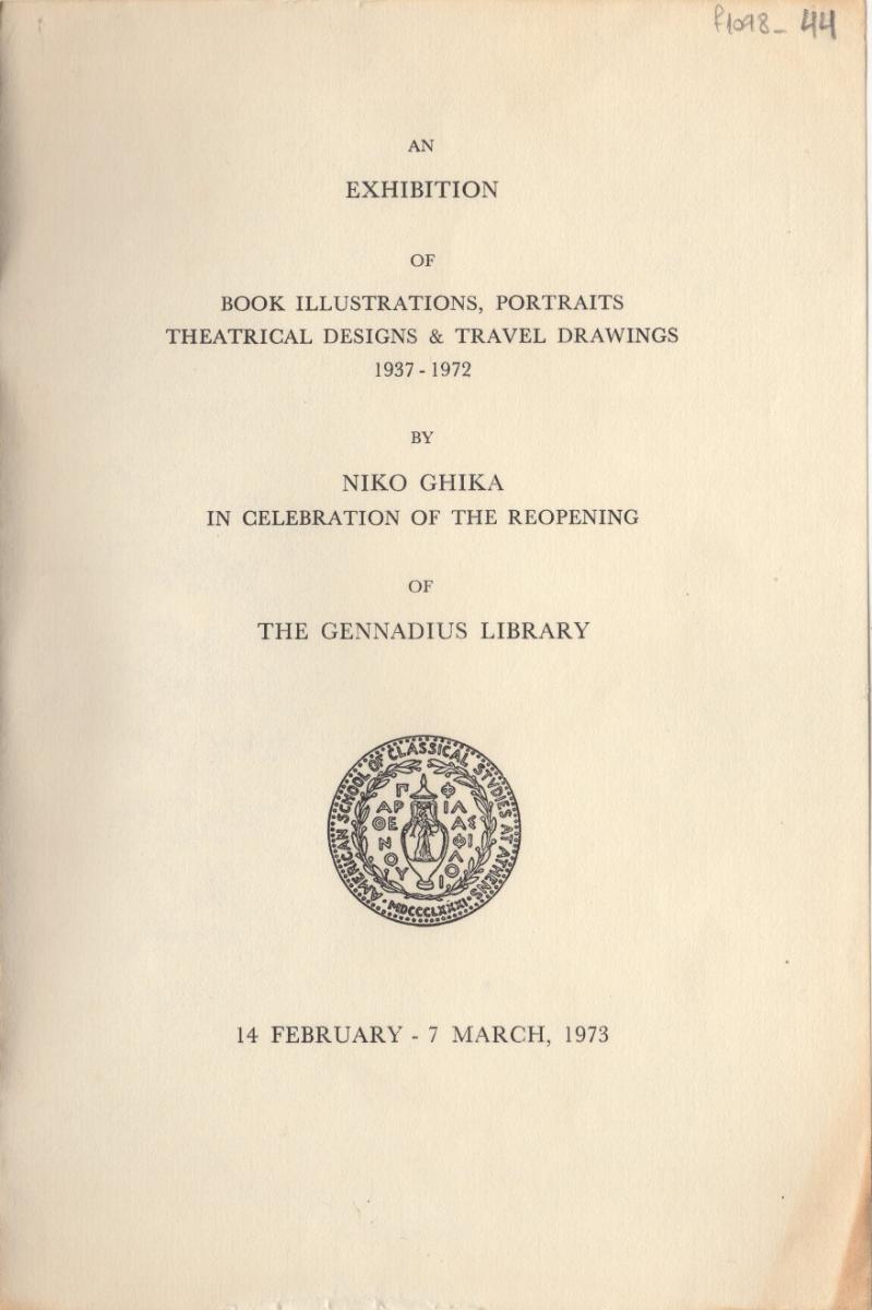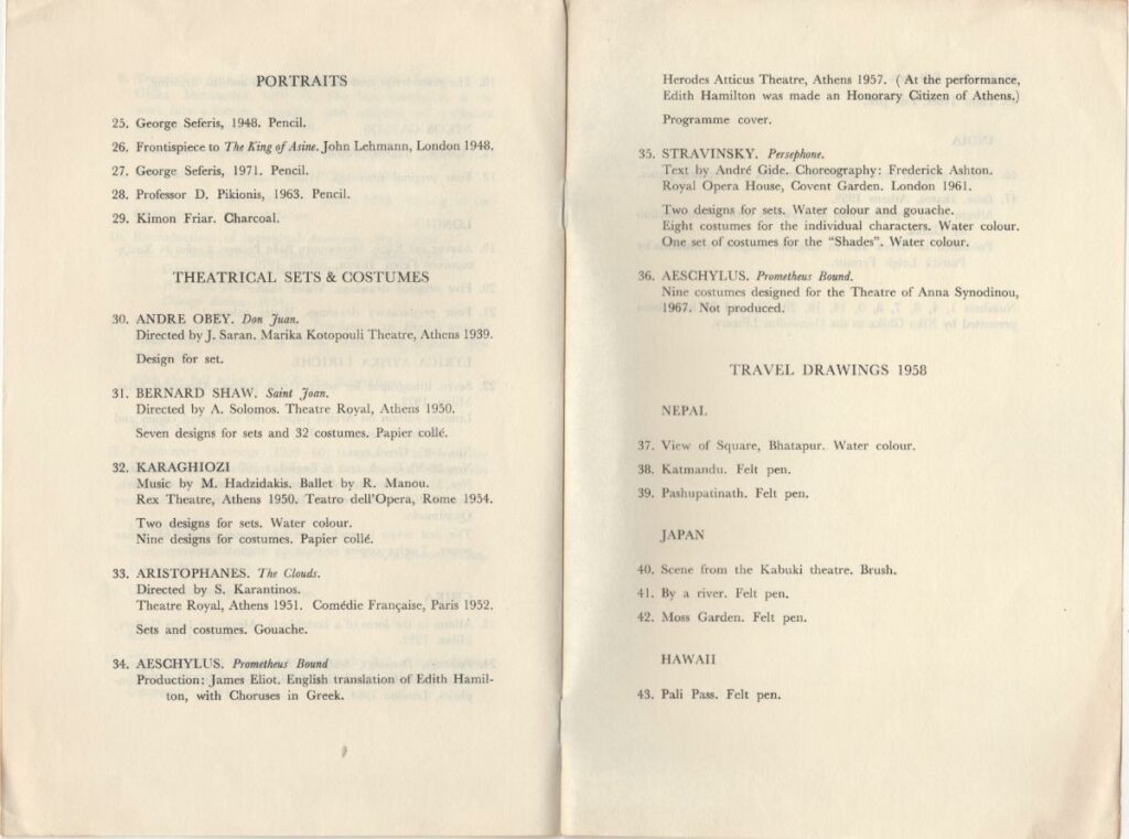 An Exhibition of Book Illustrations, Portraits, Theatrical Designes & Travel Drawings 1937-1972 by Niko Ghika