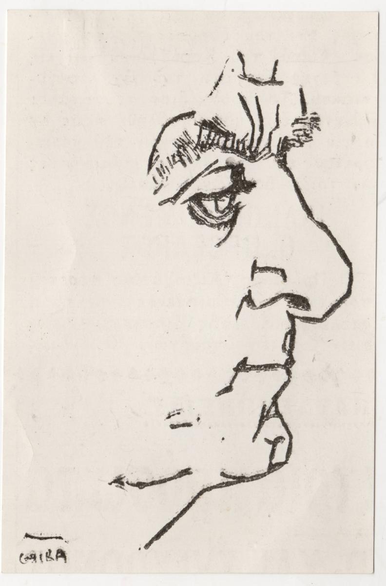 A black-and-white printed photograph of an artwork by Nikos Chatzikyriakos-Gkikas. On the reverse, handwritten insciption.