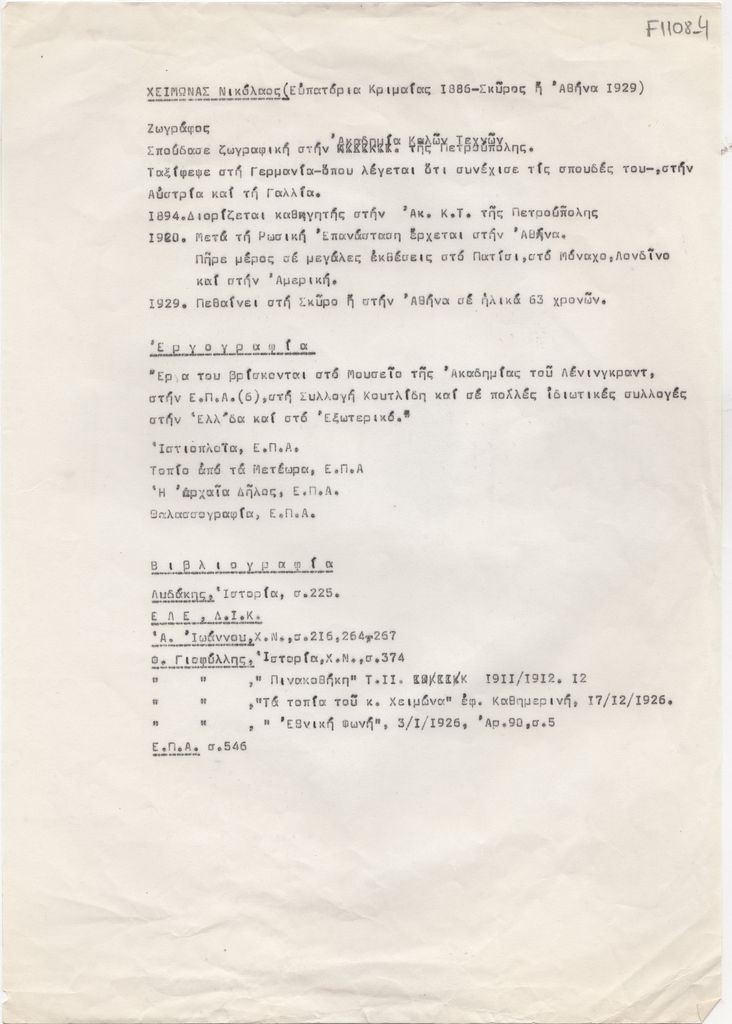 Cheimonas, Nikolaos (1866 - 1929) - Artist