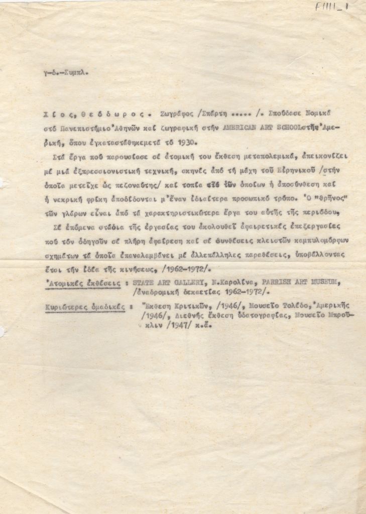 Θεόδωρος Χίος (1908 - 1999) - Artist
