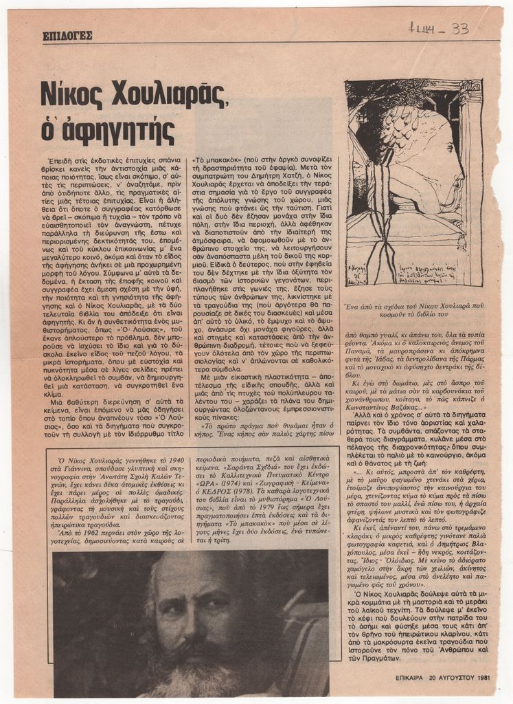 Sotiris Sorogas (1936) ; Fassianos Alekos (1935 - 2022) ; Vaggelis Dimitreas (1934 - 2019) ; Nikos Chouliaras (1940 - 2015) ; Alexis Akrithakis (1939 - 1994) ; Kokkinides Demosthenes (1929 - 2020) ; Dimitris Papageorgiou (1928 - 2016)