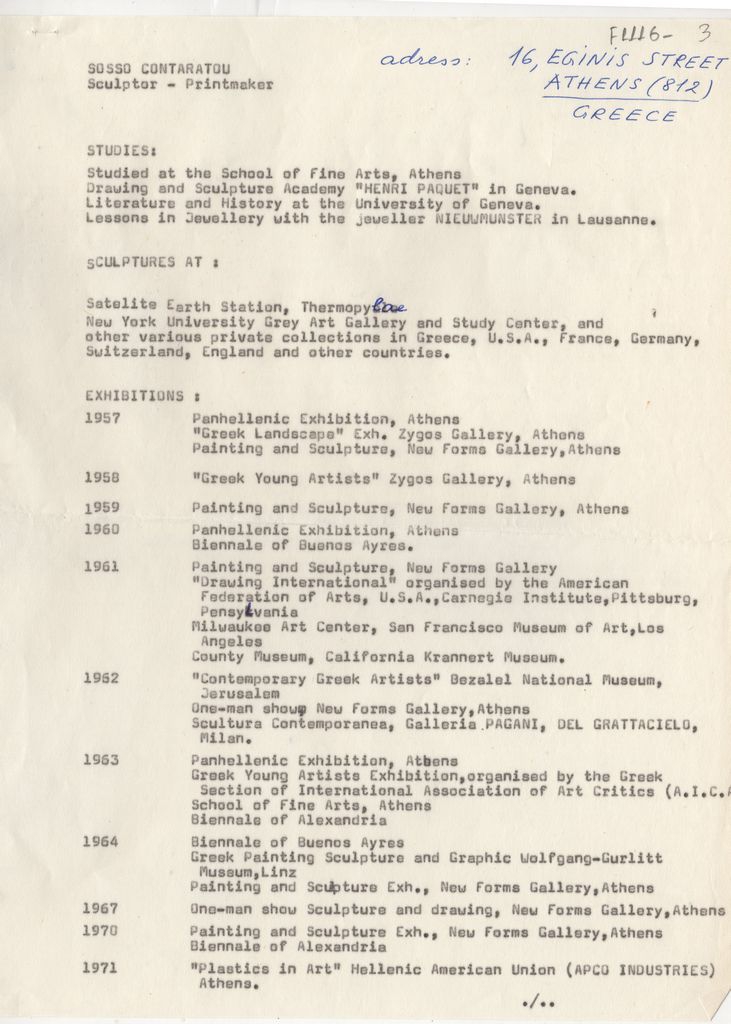 Spiteri-Veropoulou Ioanna (1920 - 2000) ; Houtopoulou-Contaratou Sosso (1923 - 1984) ; Zongopoulos Giorgos (1903 - 2004) ; Aperghis Achilleas (1909 - 1986)