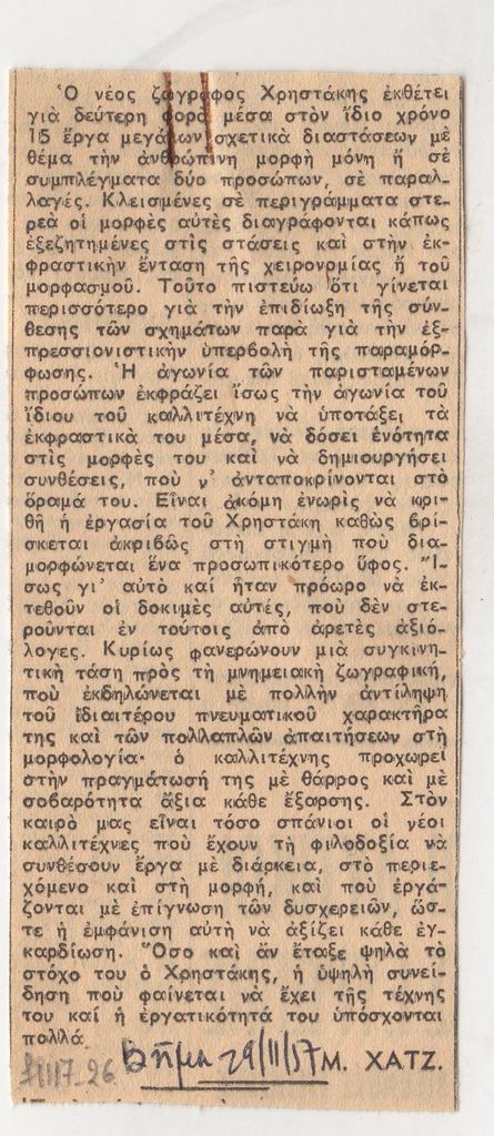 Ηρώ Κωνσταντοπούλου ; Γιάννης Νικολόπουλος ; Papagiannis Theodoros (1942) ; Tsirogiannis Apostolis (1946) ; Vyzantios Periclis (1893 - 1972) ; Ντέπη Φελουκατζή (1941) ; Δημήτρης Κούκος ; Christakis Leonidas (1929 - 2009) ; Christakopoulos Marinos (1946) ; Georgas Michalis (1947) ; Ανδρέας Γκολφινόπουλος ; Zoumpoulis Nikos (1953) ; Samios Pavlos (1948 - 2021) ; Ευάγγελος Κουζούνης ; Απόστολος Μητσάτσος ; Paouris Lazaros (1950) ; Petropoulos Stathis (1944 - 2008) ; Δημήτρης Σακελλίων (1947) ; Stathopoulos Giorgos (1944) ; Liakopoulou Marilena (? - 2016) ; Χρίστος Τζιβέλος ; Vassiloglou-Alevropoulou Marina (1945) ; Λευτέρης Βαλάκας (1944 - 1982) ; Καλλία ; Καραβίτης ; Νίκος Παρασκευάς (1940) ; Νίκος Σημηριώτης ; Κροντήρης ; Κυρτεγος ; Γιώργος Παπαδούκας ; Σταυρακάκη ; Αλέκα Γάτου ; Άλλεν-Ευσταθίου Τζούντιθ (1945) ; Μασονίδης ; Μπαχαρίου ; Γιώργος Χουλιαράς, εικαστικός (1947) ; Σταύρου