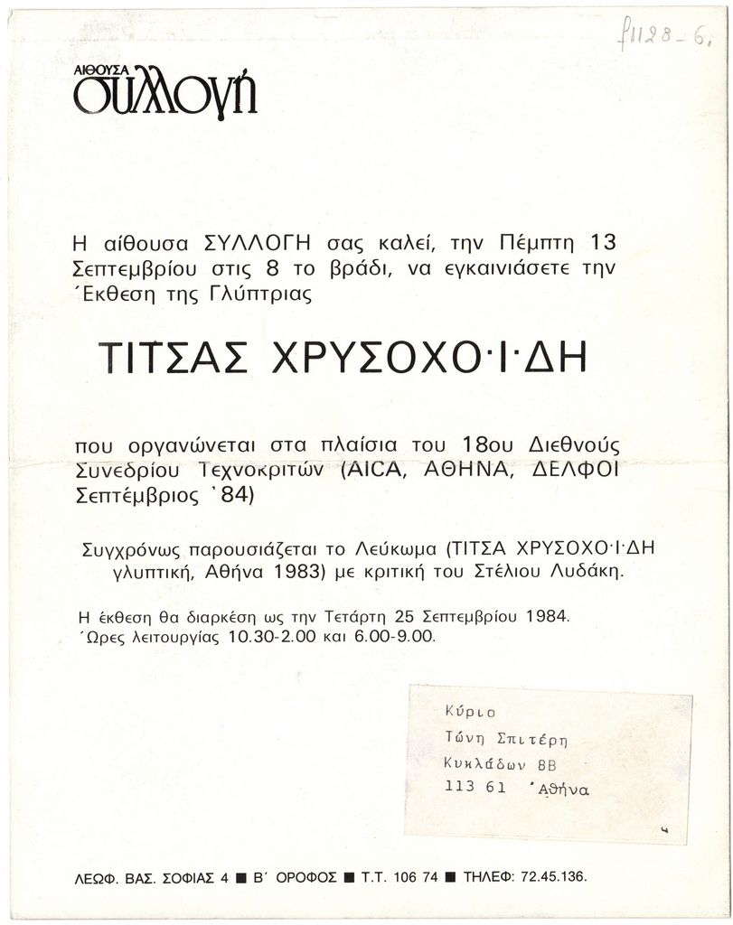 1st Art Symposium, Thessaloniki 12-14 October 1984, Announcements