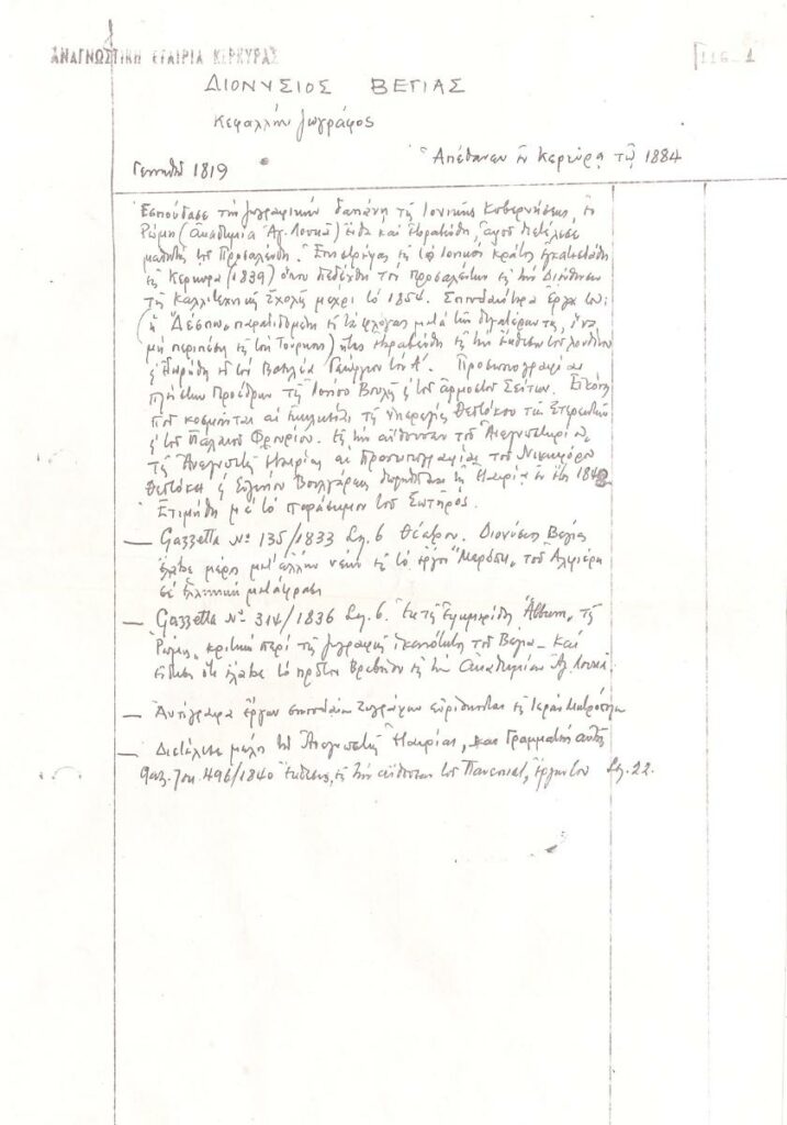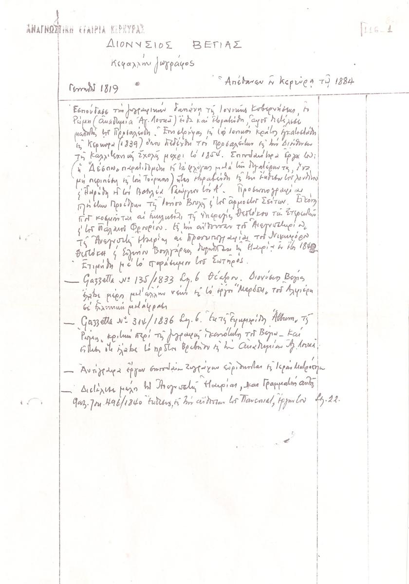 Διονύσιος Βέγιας (1810 - 1884) ; Δημήτριος Ι. Καλογερόπουλος (1868 - 1954)