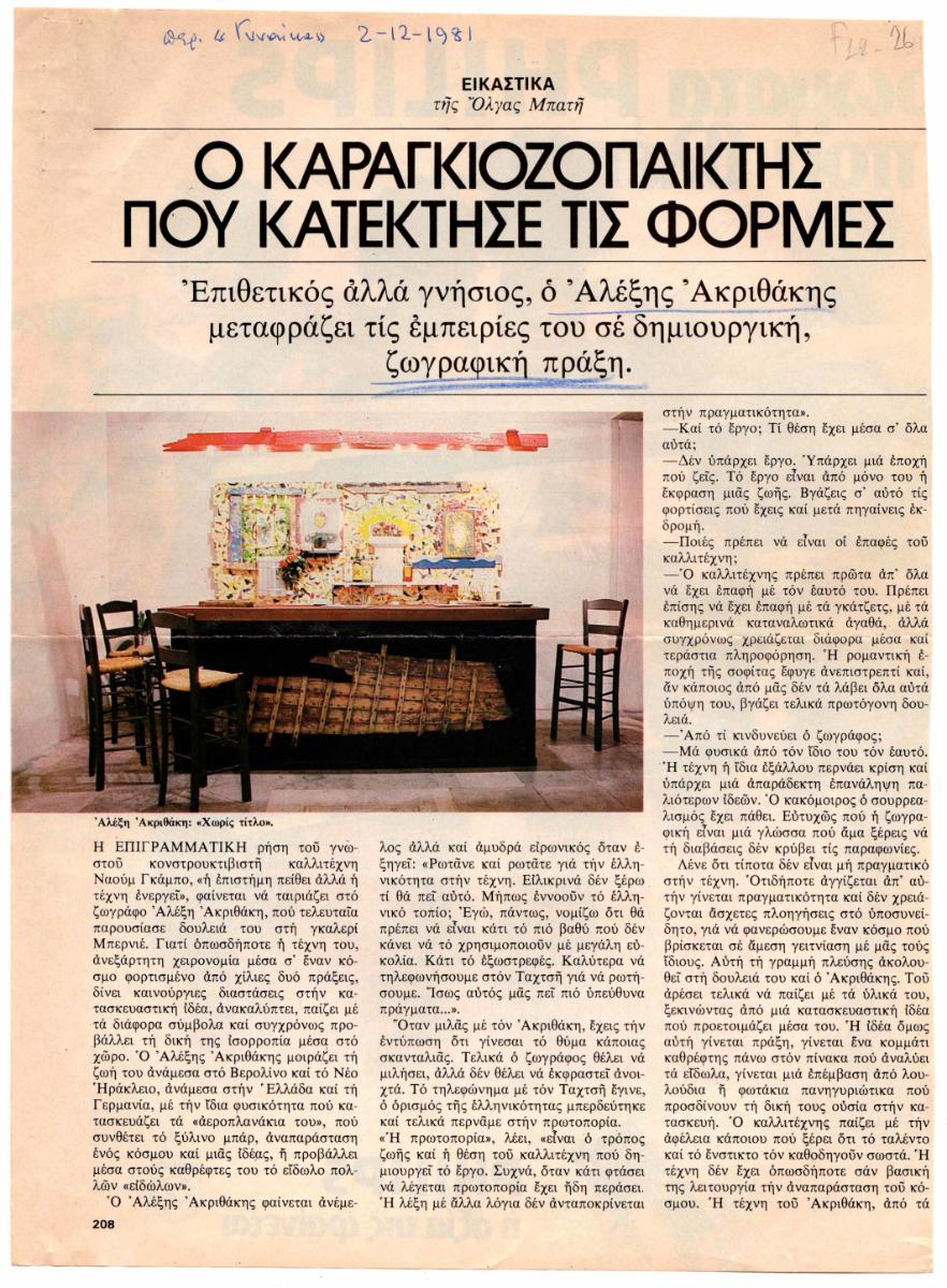 Alexis Akrithakis (1939 - 1994) - Article writer
