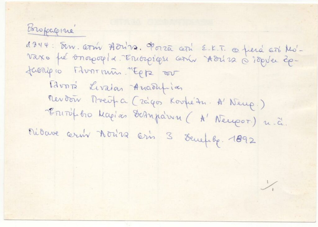 Chalepas Yannoulis (1851 - 1938) ; Vroutos Georgios (1843 - 1909) ; Ιωάννης Βιτσάρης (1843 - 1892) ; Vyzantios Periclis (1893 - 1972) ; Thomas Thomopoulos (1873 - 1937) ; Lytras Nikiforos (1832 - 1904) ; Γεώργιος Μπονάνος (1863 - 1940) ; Ανδρέας Σαββίδης