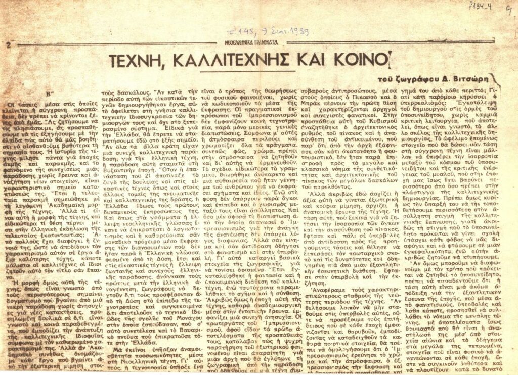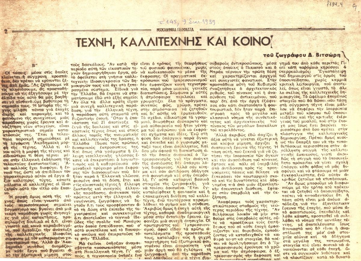 Parthenis Konstantinos (1878 - 1967) ; Spiteris Tonis (1910 - 1986) ; Vassiliou Spyros (1902 - 1985) ; Michalis Tompros (1889 - 1974) ; Hatzikyriakos-Ghika Nikos (1906 - 1994) ; Moralis Yannis (1916 - 2009) ; Galanis Dimitrios (1879 - 1966) ; Gounaropoulos Georgios (1889 - 1977) ; Asteriadis Aghinor (1898 - 1977) ; Vitsoris Mimis (1902 - 1945) ; Tsarouchis Yannis (1910 - 1989) ; Tsoclis Costas (1930) ; Kontopoulos Alekos (1904 - 1975) ; Gaitis Yannis (1923 - 1984) ; Giacometti Alberto (1901 - 1966) ; Lazaros Lameras (1913 - 1998) ; Καίτη Αντύπα (1925 - 2006) ; Maltezos Yannis (1915 - 1987)
