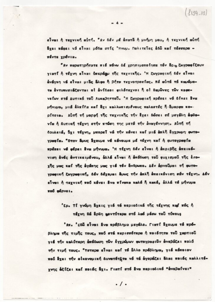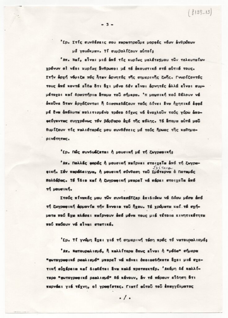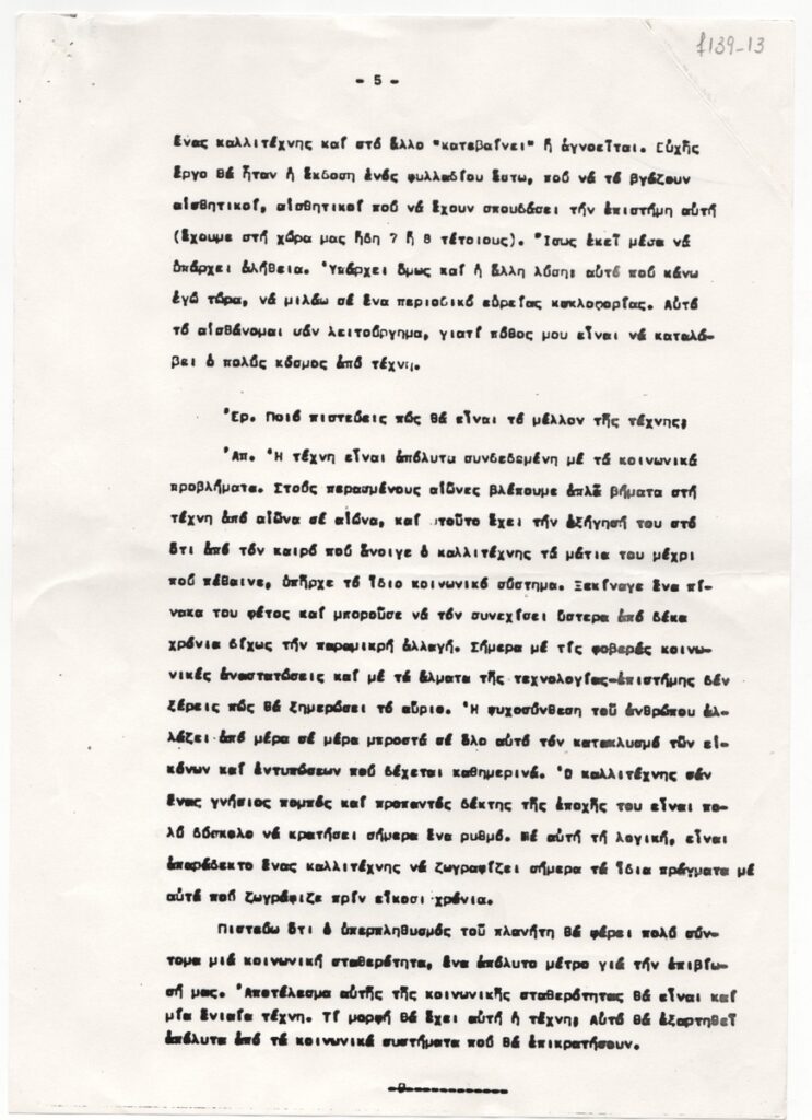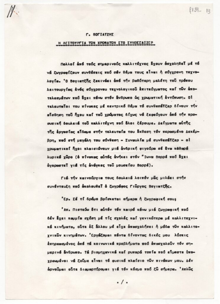 Karavia Maria (20th century) ; Kanellopoulos Panagiotis (1902 - 1986) ; Jean Helion ; Eduardo Arroyo (1937 - 2018) ; Iolas Alexander (1907 - 1987) ; Chalkousi Eleni (1901 - 1993) ; Georgios Mavroidis (1912 - 2003) ; Preka-Stefanatou Meropi (1934 - 2025) ; Prekas Paris (1926 - 1999) ; Liakopoulou Marilena (? - 2016) ; Vorres Ion (1924 - 2015) ; Gilles Aillaud (1928 - 2005)