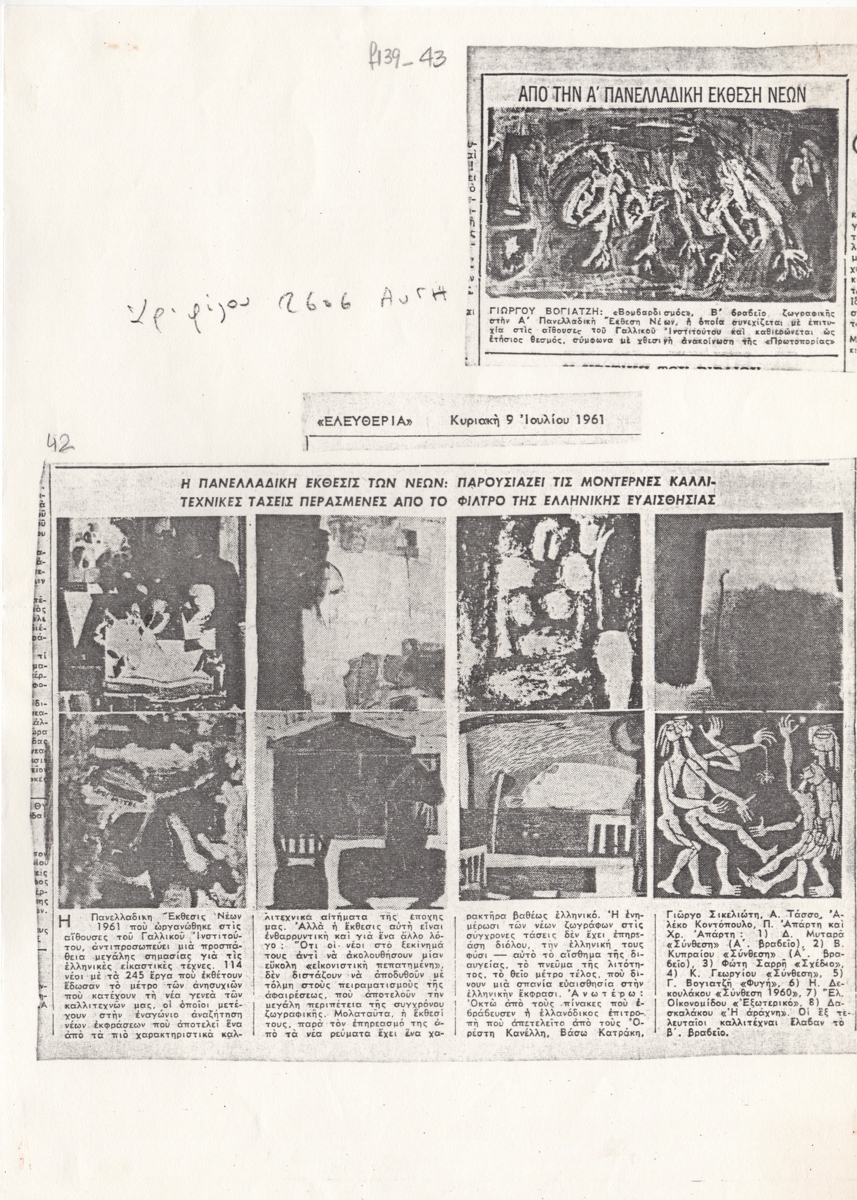 Andreou Kostas (1917 - 2007) ; Spiteri-Veropoulou Ioanna (1920 - 2000) ; Kyriakos Rokos (1945) ; Yannis Grammatikopoulos (1928) ; Gaitis Yannis (1923 - 1984) ; Sonia Kalogeropoulou (1945 - 2003) ; Giorgos Vogiatzis (1935 - 1993) ; Christos Sarakatsianos (1937 - 2022)