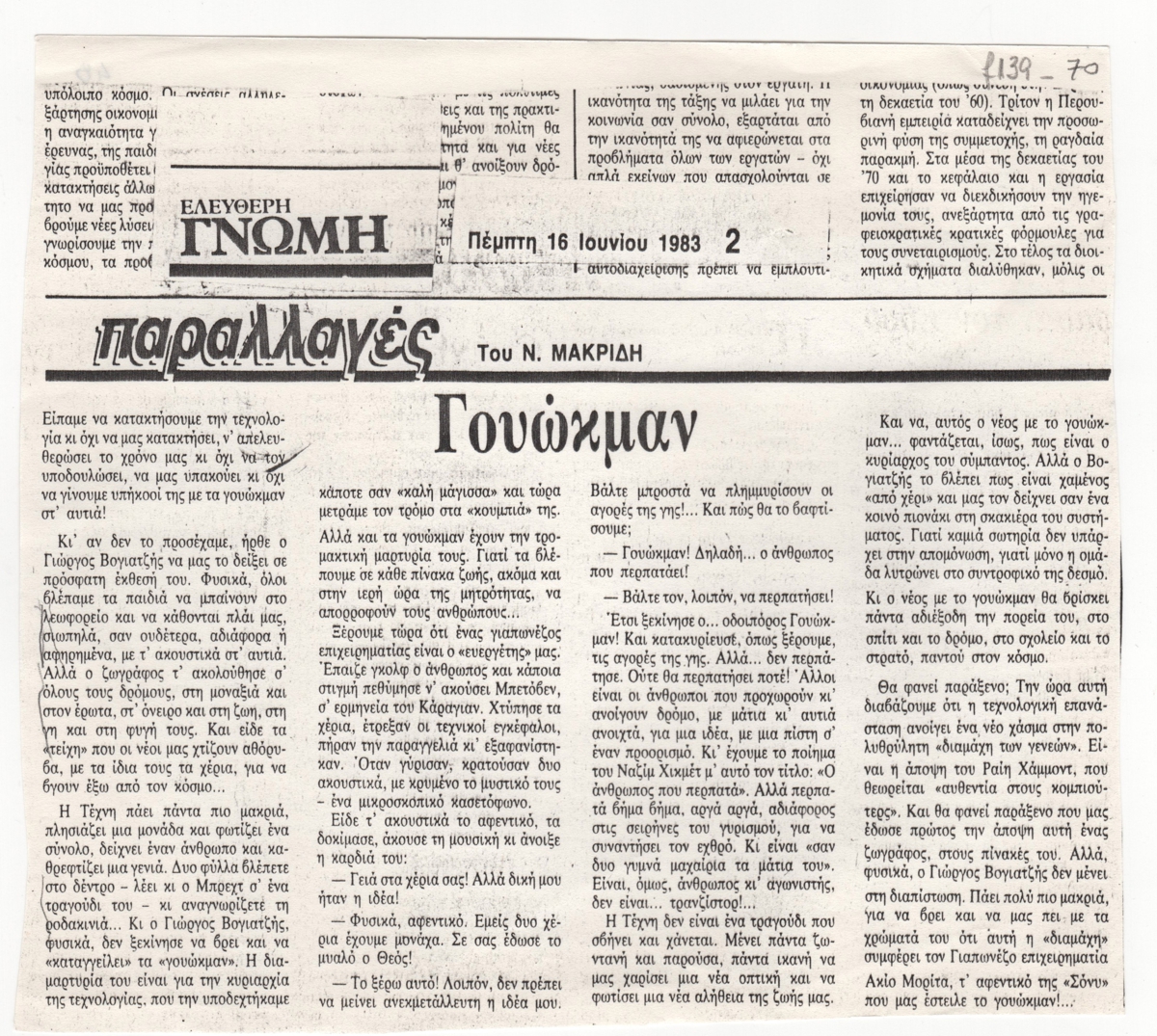 Giorgos Vogiatzis (1935 - 1993) - Article writer