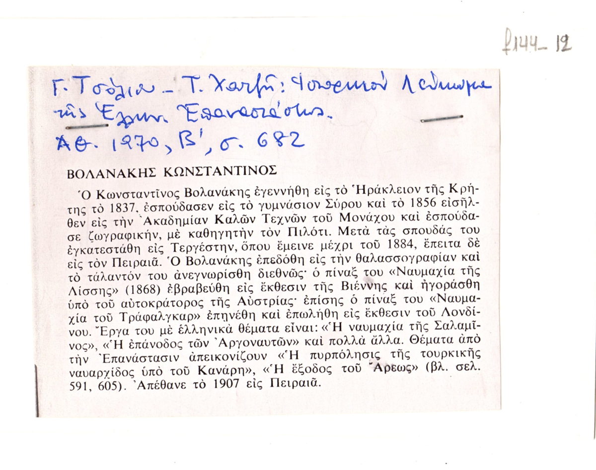 Τσούλιος, Γ. / Χατζής, Τ. (επιμ.), "Ιστορικόν Λεύκωμα της Ελληνικής Επαναστάσεως", Αθήνα, Μέλισσα, 1970.