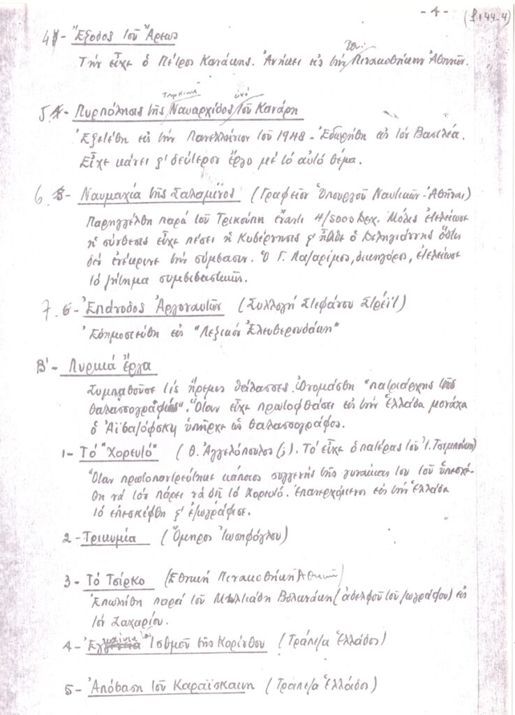 Teloglion Foundation of Arts ; Spiteris Tonis (1910 - 1986) ; Goulaki-Voutira Alexandra (20th century) ; Makris Kitsos (1917 - 1988) ; Mavrommatis Emmanouil (1935) ; Xydis Alexandros (1918 - 2004) ; Papanikolaou Miltiadis (1947) ; Pantermalis Dimitrios (1940) ; Mourelos Georgios (1912 - 1994) ; Christou Chrysanthos (1922 - 2016) ; Kazazi Sofia (20th century) ; Stefanidis Manos (1954) ; Varopoulou Eleni (1945 ) ; Kampouridis Charis (1950) ; Schina Athina ; Georgiadou-Kountoura Euthymia (20th century) ; Kotidis Antonis (1949) ; Charalampidis Alkis (20th century) ; Christianopoulos Ntinos (1931 - 2020) ; Nikonanos Nikos (20th century) ; Fatourou-Isychaki Kanto (20th century) ; Skaltsa Matoura (20th century) ; Sachini Aggeliki (20th century) ; Nikoulis G. (20th century) ; Ioannidis Andreas (1950) ; Pappa Sania (1957)