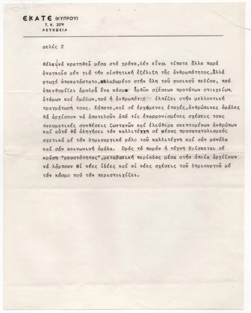 Adamantios Diamantis (1900 - 1994) ; Giorgos Skoteinos (1937 - 2022) ; Tilemachos Kanthos (1910 - 1993) ; Andreas Ladommatos (1940) ; Γιώργος Κυριάκου (1940) ; Dimitris Constantinou (1924 - 2010) ; Votsis Stelios (1922 - 2012) ; Averkiou Kostas (1917 - 1981) ; Μαρία Δωρίτου ; Joachim Costas (1936) ; Yulika Lakeridou (1940) ; Αντώνης Αντώνιος (1942) ; Nikos Kouroussis (1937) ; Anna Konstantinou (1947) ; Marios Loizides (1928 - 1988) ; Άγγελος Μακρίδης (1942) ; Rea Beili Athanasiadou ; Ανδρέας Σαββίδης ; Μάνος Κράλης ; Kate Stephanidou-Fasouliotou (1925 - 2012) ; Gerokostas, Dimitrakis (1934) ; Χαρίλαος Δίκαιος ; Γιασουμής Γεωργίου ; Γεώργιος Θεμιστοκλέους ; Άντης Αδάμος ; Κώστας Αργυρού (1917 - 2001) ; Γεώργιος Κοτσώνης ; Στέλλα Μιχαηλίδου (1940) ; Angelidou-Antoniadou, Androulla (1947) ; Αριστείδης Αναστασιάδης (1940) ; Λευτέρης Οικονόμου (1930) ; Βέρα Χατζηδά-Γαβριηλίδου (1936) ; Κωνσταντίνος Γιαννικούρης ; Σούλα Λειψού-Γιάγκου (1952) ; Εύρος Ευρυβιάδης ; Ανδρέας Εφεσόπουλος ; Βίκτωρ Ιωαννίδης ; Μαρία Κάνθου-Δανιήλ ; Βαθούλα Κούμα ; Νίκη Μαραγκού ; Αλέκα Ματέλλα ; Έλλη Μιτζή (1930) ; Μίκης Α. Μιχαηλίδης ; Stasinos Stass Paraskos (1933 - 2014) ; Άντης Παρτζίλης ; Ανδρέας Ποαρός ; Άννα Ρώσση-Νικολαΐδου ; Ανδρέας Σολέας
