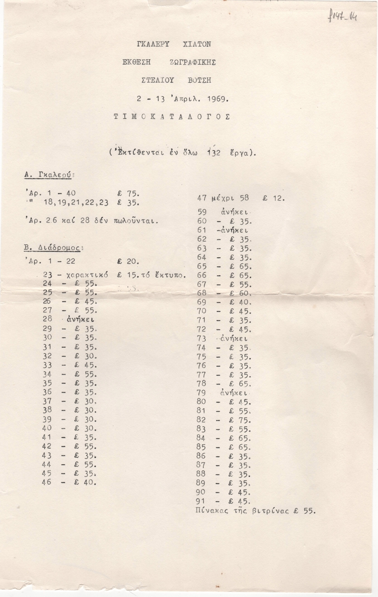 Adamantios Diamantis (1900 - 1994) ; Giorgos Skoteinos (1937 - 2022) ; Tilemachos Kanthos (1910 - 1993) ; Andreas Ladommatos (1940) ; Γιώργος Κυριάκου (1940) ; Dimitris Constantinou (1924 - 2010) ; Votsis Stelios (1922 - 2012) ; Averkiou Kostas (1917 - 1981) ; Μαρία Δωρίτου ; Joachim Costas (1936) ; Yulika Lakeridou (1940) ; Αντώνης Αντώνιος (1942) ; Nikos Kouroussis (1937) ; Anna Konstantinou (1947) ; Marios Loizides (1928 - 1988) ; Άγγελος Μακρίδης (1942) ; Rea Beili Athanasiadou ; Ανδρέας Σαββίδης ; Μάνος Κράλης ; Kate Stephanidou-Fasouliotou (1925 - 2012) ; Gerokostas, Dimitrakis (1934) ; Χαρίλαος Δίκαιος ; Γιασουμής Γεωργίου ; Γεώργιος Θεμιστοκλέους ; Άντης Αδάμος ; Κώστας Αργυρού (1917 - 2001) ; Γεώργιος Κοτσώνης ; Στέλλα Μιχαηλίδου (1940) ; Angelidou-Antoniadou, Androulla (1947) ; Αριστείδης Αναστασιάδης (1940) ; Λευτέρης Οικονόμου (1930) ; Βέρα Χατζηδά-Γαβριηλίδου (1936) ; Κωνσταντίνος Γιαννικούρης ; Σούλα Λειψού-Γιάγκου (1952) ; Εύρος Ευρυβιάδης ; Ανδρέας Εφεσόπουλος ; Βίκτωρ Ιωαννίδης ; Μαρία Κάνθου-Δανιήλ ; Βαθούλα Κούμα ; Νίκη Μαραγκού ; Αλέκα Ματέλλα ; Έλλη Μιτζή (1930) ; Μίκης Α. Μιχαηλίδης ; Stasinos Stass Paraskos (1933 - 2014) ; Άντης Παρτζίλης ; Ανδρέας Ποαρός ; Άννα Ρώσση-Νικολαΐδου ; Ανδρέας Σολέας