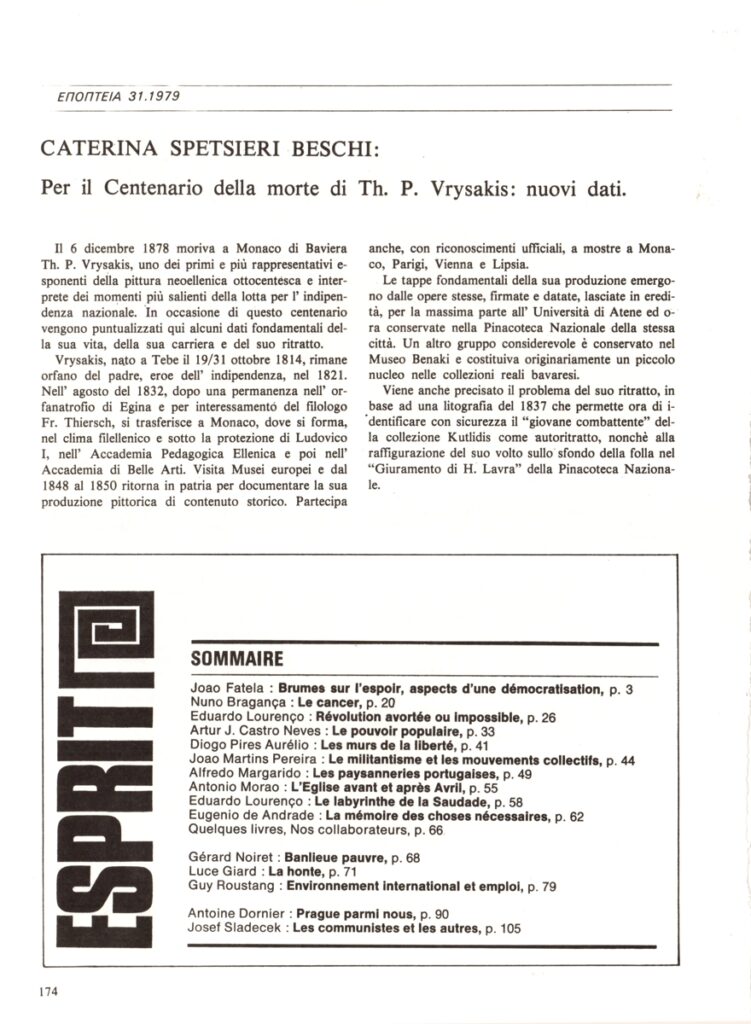 Spiteri-Veropoulou Ioanna (1920 - 2000) ; Valsecchi Marco (1913 - 1980) ; Αικατερίνη Σπετσιέρη-Beschi