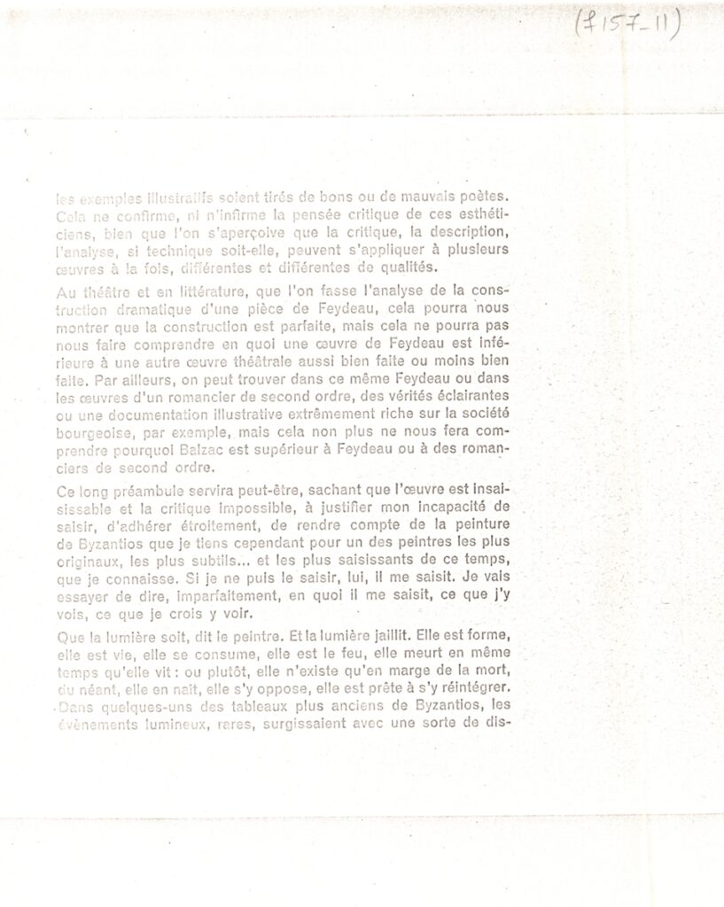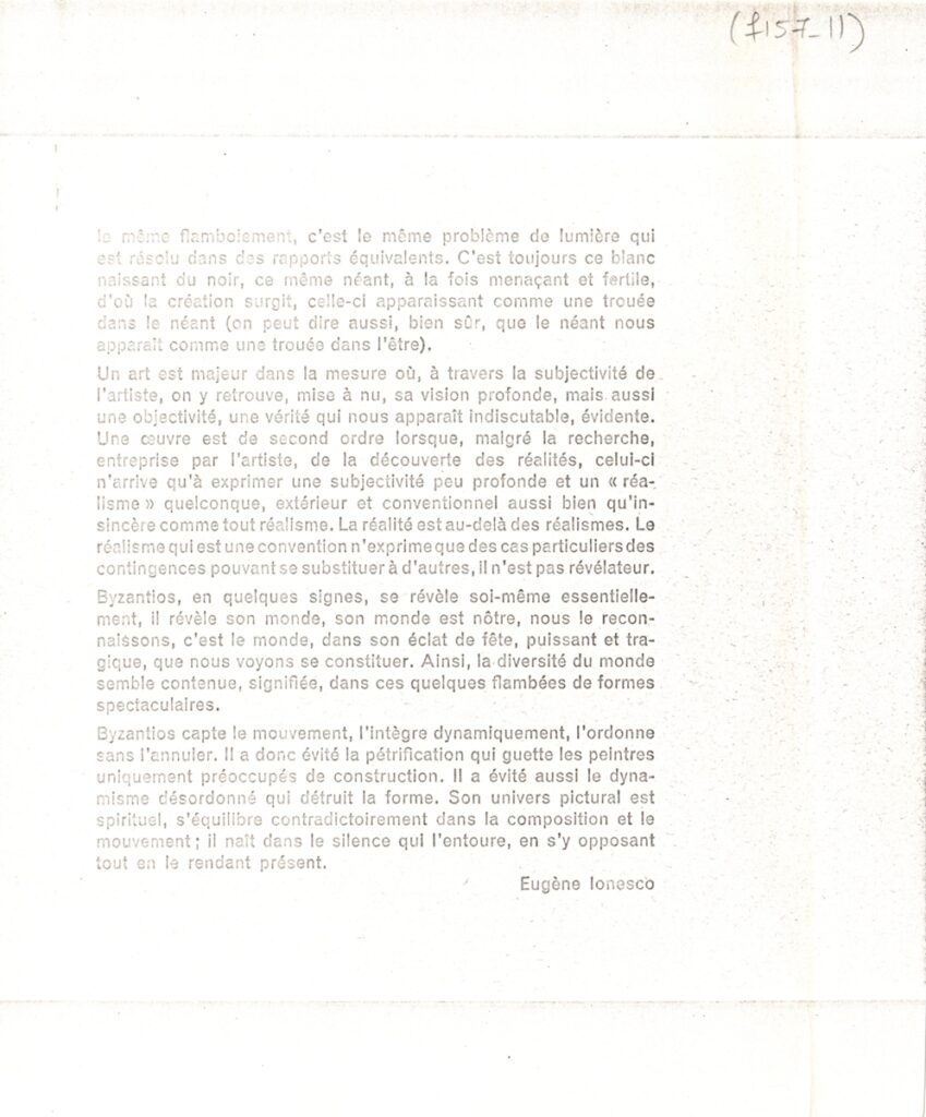 Andreou Kostas (1917 - 2007) ; Fatouros Dimitris (1928 - 2020) ; Spiteri-Veropoulou Ioanna (1920 - 2000) ; Eugène Delacroix (1798 - 1863) ; Touyas Giorgos (1922 - 1994) ; Simossi Gabriela (1926 - 1999) ; Tsoclis Costas (1930) ; Sklavos Yerassimos (1927 - 1967) ; Άγγελος Αγγελόπουλος (1904 - 1995) ; Kontopoulos Alekos (1904 - 1975) ; Mylonas Alex (1923 - 2016) ; Vyzantios Ntikos (1924 - 2007) ; Berto Lardera ; Valsamis Kostas (1908 - 2003) ; Gaitis Yannis (1923 - 1984) ; Le Corbusier (1887 - 1965) ; Georges Mathieu (1921 - 2012) ; Theodoros (Papadimitriou) (1931 - 2018) ; Takis (Vassilakis Panayiotis) (1925 - 2019) ; Victor Vasarely ; Philolaos (Tloupas) (1923 - 2010) ; Kessanlis Nikos (1930 - 2004) ; Kriezi Tita (1930 - 2021) ; Lyberaki Aglaia (1923 - 1985) ; Maltezos Yannis (1915 - 1987) ; Molfesis Iasson (1925 - 2009) ; Paniaras Kostas (1934 - 2014) ; Karras Kostas (1936 - 2012) ; Γιώργος Βαφειάδης