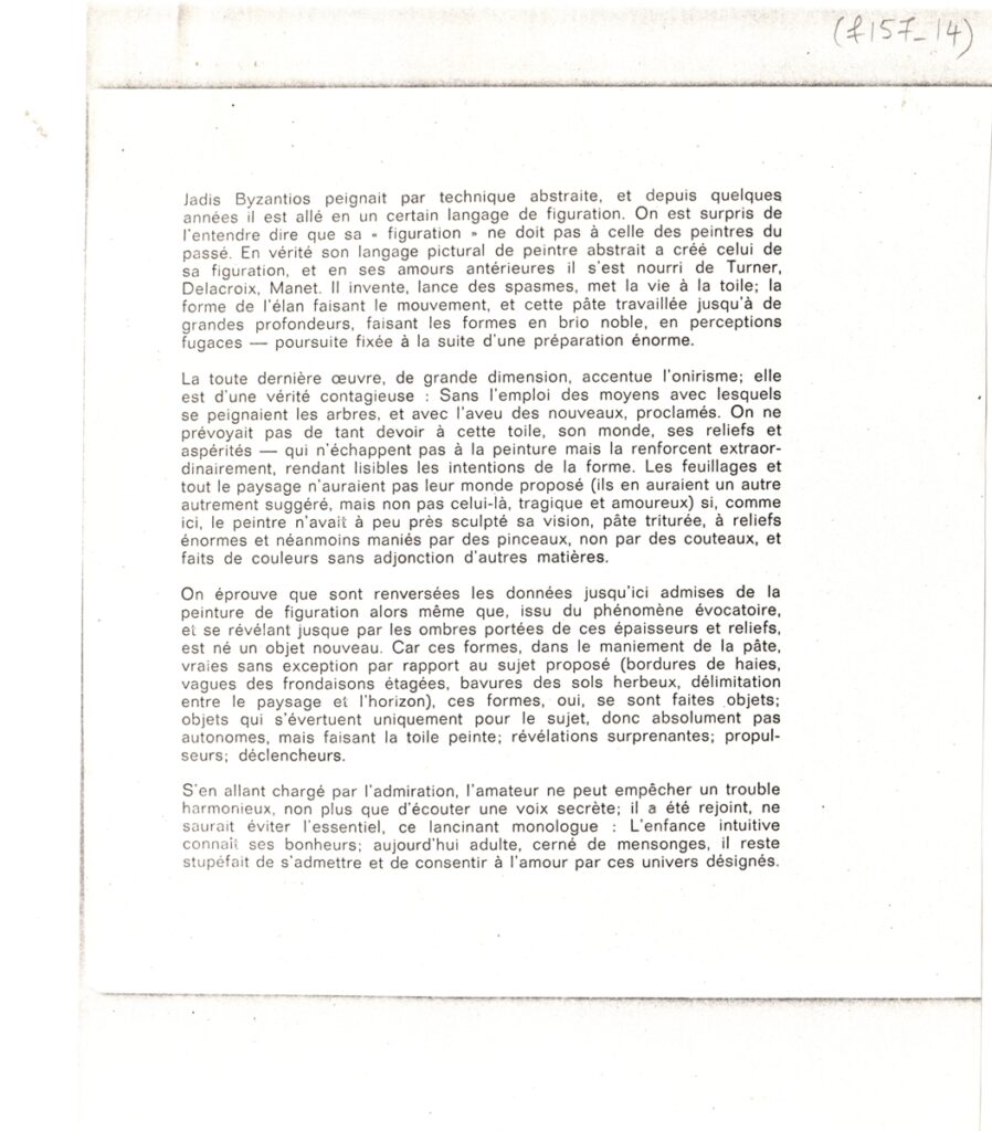Andreou Kostas (1917 - 2007) ; Fatouros Dimitris (1928 - 2020) ; Spiteri-Veropoulou Ioanna (1920 - 2000) ; Eugène Delacroix (1798 - 1863) ; Touyas Giorgos (1922 - 1994) ; Simossi Gabriela (1926 - 1999) ; Tsoclis Costas (1930) ; Sklavos Yerassimos (1927 - 1967) ; Άγγελος Αγγελόπουλος (1904 - 1995) ; Kontopoulos Alekos (1904 - 1975) ; Mylonas Alex (1923 - 2016) ; Vyzantios Ntikos (1924 - 2007) ; Berto Lardera ; Valsamis Kostas (1908 - 2003) ; Gaitis Yannis (1923 - 1984) ; Le Corbusier (1887 - 1965) ; Georges Mathieu (1921 - 2012) ; Theodoros (Papadimitriou) (1931 - 2018) ; Takis (Vassilakis Panayiotis) (1925 - 2019) ; Victor Vasarely ; Philolaos (Tloupas) (1923 - 2010) ; Kessanlis Nikos (1930 - 2004) ; Kriezi Tita (1930 - 2021) ; Lyberaki Aglaia (1923 - 1985) ; Maltezos Yannis (1915 - 1987) ; Molfesis Iasson (1925 - 2009) ; Paniaras Kostas (1934 - 2014) ; Karras Kostas (1936 - 2012) ; Γιώργος Βαφειάδης