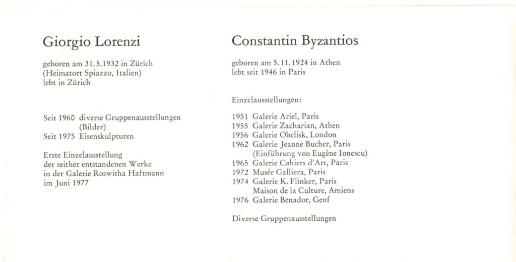 Andreou Kostas (1917 - 2007) ; Fatouros Dimitris (1928 - 2020) ; Spiteri-Veropoulou Ioanna (1920 - 2000) ; Eugène Delacroix (1798 - 1863) ; Touyas Giorgos (1922 - 1994) ; Simossi Gabriela (1926 - 1999) ; Tsoclis Costas (1930) ; Sklavos Yerassimos (1927 - 1967) ; Άγγελος Αγγελόπουλος (1904 - 1995) ; Kontopoulos Alekos (1904 - 1975) ; Mylonas Alex (1923 - 2016) ; Vyzantios Ntikos (1924 - 2007) ; Berto Lardera ; Valsamis Kostas (1908 - 2003) ; Gaitis Yannis (1923 - 1984) ; Le Corbusier (1887 - 1965) ; Georges Mathieu (1921 - 2012) ; Theodoros (Papadimitriou) (1931 - 2018) ; Takis (Vassilakis Panayiotis) (1925 - 2019) ; Victor Vasarely ; Philolaos (Tloupas) (1923 - 2010) ; Kessanlis Nikos (1930 - 2004) ; Kriezi Tita (1930 - 2021) ; Lyberaki Aglaia (1923 - 1985) ; Maltezos Yannis (1915 - 1987) ; Molfesis Iasson (1925 - 2009) ; Paniaras Kostas (1934 - 2014) ; Karras Kostas (1936 - 2012) ; Γιώργος Βαφειάδης