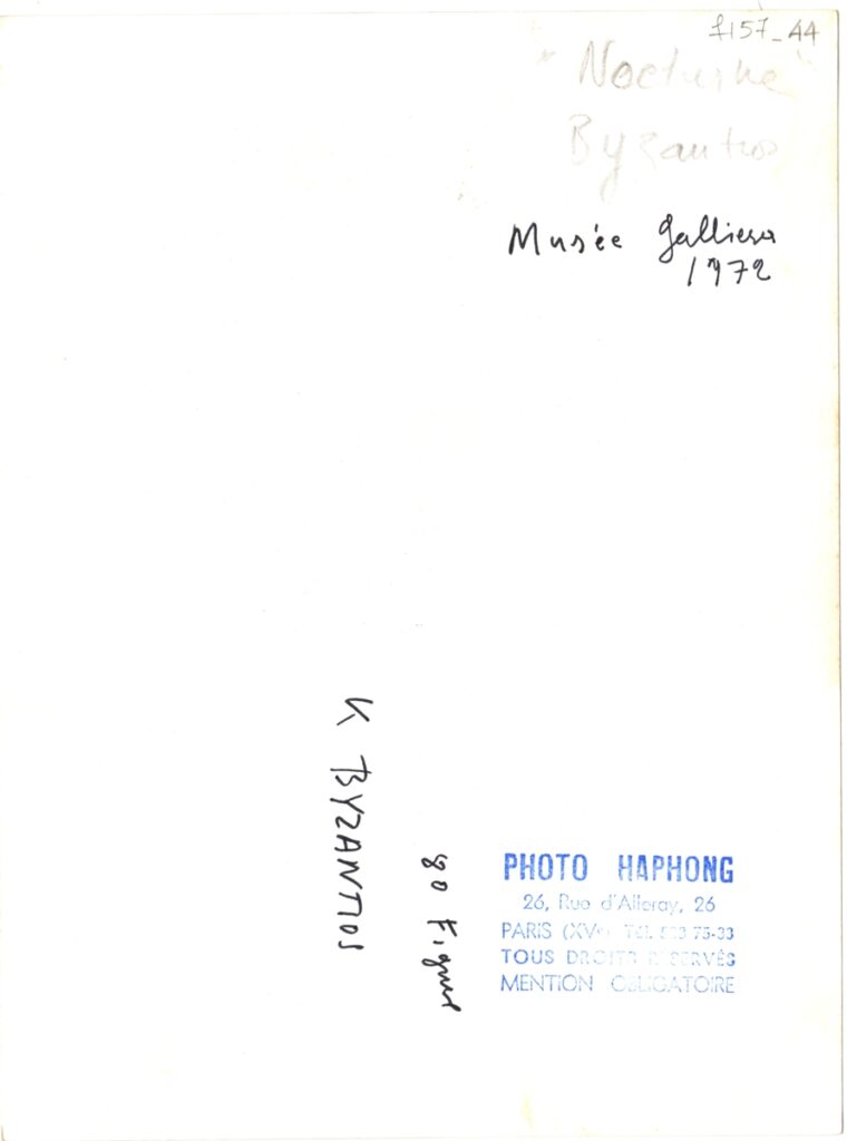 Andreou Kostas (1917 - 2007) ; Fatouros Dimitris (1928 - 2020) ; Spiteri-Veropoulou Ioanna (1920 - 2000) ; Eugène Delacroix (1798 - 1863) ; Touyas Giorgos (1922 - 1994) ; Simossi Gabriela (1926 - 1999) ; Tsoclis Costas (1930) ; Sklavos Yerassimos (1927 - 1967) ; Άγγελος Αγγελόπουλος (1904 - 1995) ; Kontopoulos Alekos (1904 - 1975) ; Mylonas Alex (1923 - 2016) ; Vyzantios Ntikos (1924 - 2007) ; Berto Lardera ; Valsamis Kostas (1908 - 2003) ; Gaitis Yannis (1923 - 1984) ; Le Corbusier (1887 - 1965) ; Georges Mathieu (1921 - 2012) ; Theodoros (Papadimitriou) (1931 - 2018) ; Takis (Vassilakis Panayiotis) (1925 - 2019) ; Victor Vasarely ; Philolaos (Tloupas) (1923 - 2010) ; Kessanlis Nikos (1930 - 2004) ; Kriezi Tita (1930 - 2021) ; Lyberaki Aglaia (1923 - 1985) ; Maltezos Yannis (1915 - 1987) ; Molfesis Iasson (1925 - 2009) ; Paniaras Kostas (1934 - 2014) ; Karras Kostas (1936 - 2012) ; Γιώργος Βαφειάδης