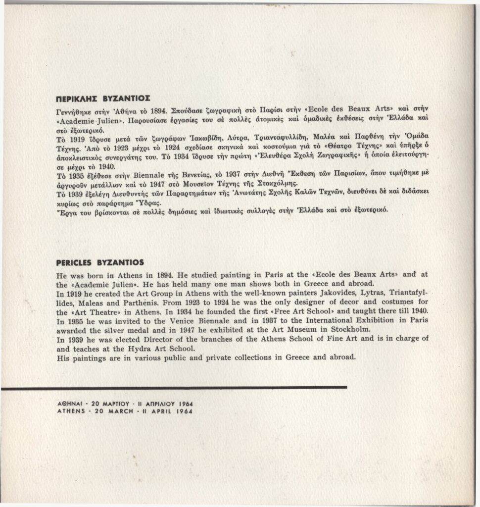 Βυζάντιος Περικλής : 1964, "Βυζάντιος", Αίθουσα Τέχνης Αθηνών - Χίλτον, Αθήνα, 20/03/1964 - 11/04/1964