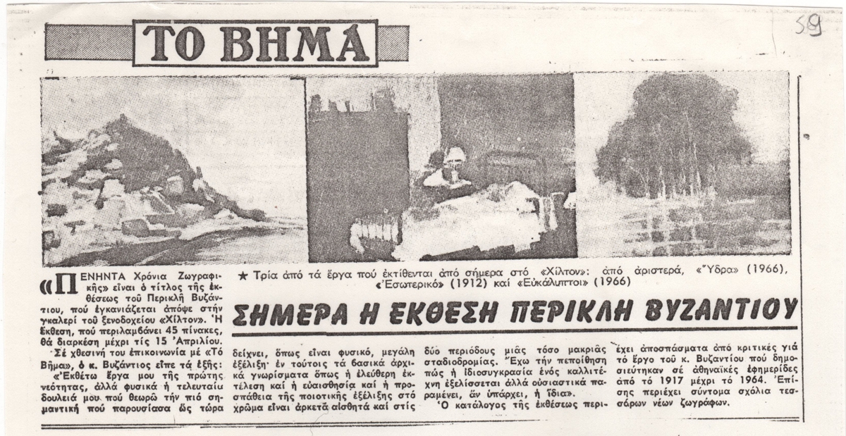 Byzantios Periklis : 1967, “P. Byzantios – 50 Years of Painting”, Athens Art Gallery – Hilton, March 15 – April 15, 1967
