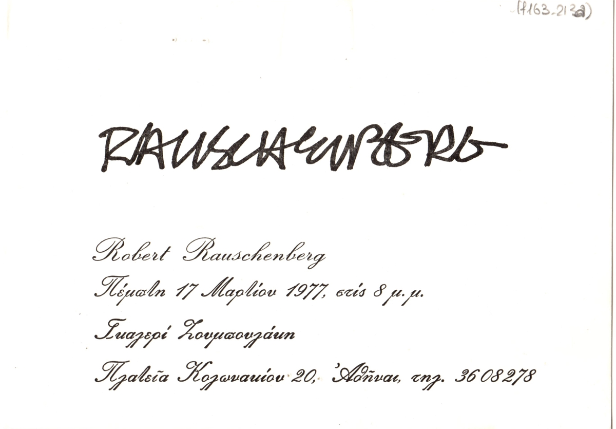 Ioannou Giorgos (1926 - 2017) ; Vassiliou Spyros (1902 - 1985) ; Perdikidis Dimitris (1922 - 1989) ; Fassianos Alekos (1935 - 2022) ; Tsoclis Costas (1930) ; Danil (Panagopoulos) (1924 - 2008) ; Restany Pierre (1930 - 2003) ; Mytaras Dimitris (1934 - 2017) ; Karras Christos (1930 - 2023) ; Rauschenberg Robert (1925 - 2008) ; Jean Dubuffet (1901 - 1985) ; Zoltán Kemény (1907 - 1965) ; Βασίλης Κυπραίος (1936 - 2021) ; Χάρης Βογιατζής (1924 - 1981) ; Kaniaris Vlassis (1928 - 2011) ; Kessanlis Nikos (1930 - 2004) ; Kokkinides Demosthenes (1929 - 2020) ; Γρηγόρης Τούντας