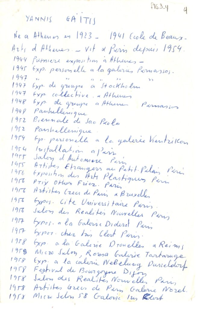 Andreou Kostas (1917 - 2007) ; Fatouros Dimitris (1928 - 2020) ; Spiteri-Veropoulou Ioanna (1920 - 2000) ; Eugène Delacroix (1798 - 1863) ; Touyas Giorgos (1922 - 1994) ; Simossi Gabriela (1926 - 1999) ; Tsoclis Costas (1930) ; Sklavos Yerassimos (1927 - 1967) ; Άγγελος Αγγελόπουλος (1904 - 1995) ; Kontopoulos Alekos (1904 - 1975) ; Mylonas Alex (1923 - 2016) ; Vyzantios Ntikos (1924 - 2007) ; Berto Lardera ; Valsamis Kostas (1908 - 2003) ; Gaitis Yannis (1923 - 1984) ; Le Corbusier (1887 - 1965) ; Georges Mathieu (1921 - 2012) ; Theodoros (Papadimitriou) (1931 - 2018) ; Takis (Vassilakis Panayiotis) (1925 - 2019) ; Victor Vasarely ; Philolaos (Tloupas) (1923 - 2010) ; Kessanlis Nikos (1930 - 2004) ; Kriezi Tita (1930 - 2021) ; Lyberaki Aglaia (1923 - 1985) ; Maltezos Yannis (1915 - 1987) ; Molfesis Iasson (1925 - 2009) ; Paniaras Kostas (1934 - 2014) ; Karras Kostas (1936 - 2012) ; Γιώργος Βαφειάδης
