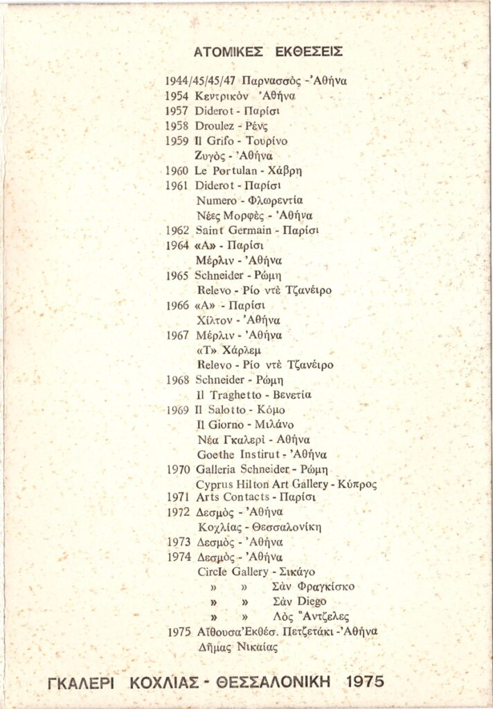 Andreou Kostas (1917 - 2007) ; Fatouros Dimitris (1928 - 2020) ; Spiteri-Veropoulou Ioanna (1920 - 2000) ; Eugène Delacroix (1798 - 1863) ; Touyas Giorgos (1922 - 1994) ; Simossi Gabriela (1926 - 1999) ; Tsoclis Costas (1930) ; Sklavos Yerassimos (1927 - 1967) ; Άγγελος Αγγελόπουλος (1904 - 1995) ; Kontopoulos Alekos (1904 - 1975) ; Mylonas Alex (1923 - 2016) ; Vyzantios Ntikos (1924 - 2007) ; Berto Lardera ; Valsamis Kostas (1908 - 2003) ; Gaitis Yannis (1923 - 1984) ; Le Corbusier (1887 - 1965) ; Georges Mathieu (1921 - 2012) ; Theodoros (Papadimitriou) (1931 - 2018) ; Takis (Vassilakis Panayiotis) (1925 - 2019) ; Victor Vasarely ; Philolaos (Tloupas) (1923 - 2010) ; Kessanlis Nikos (1930 - 2004) ; Kriezi Tita (1930 - 2021) ; Lyberaki Aglaia (1923 - 1985) ; Maltezos Yannis (1915 - 1987) ; Molfesis Iasson (1925 - 2009) ; Paniaras Kostas (1934 - 2014) ; Karras Kostas (1936 - 2012) ; Γιώργος Βαφειάδης