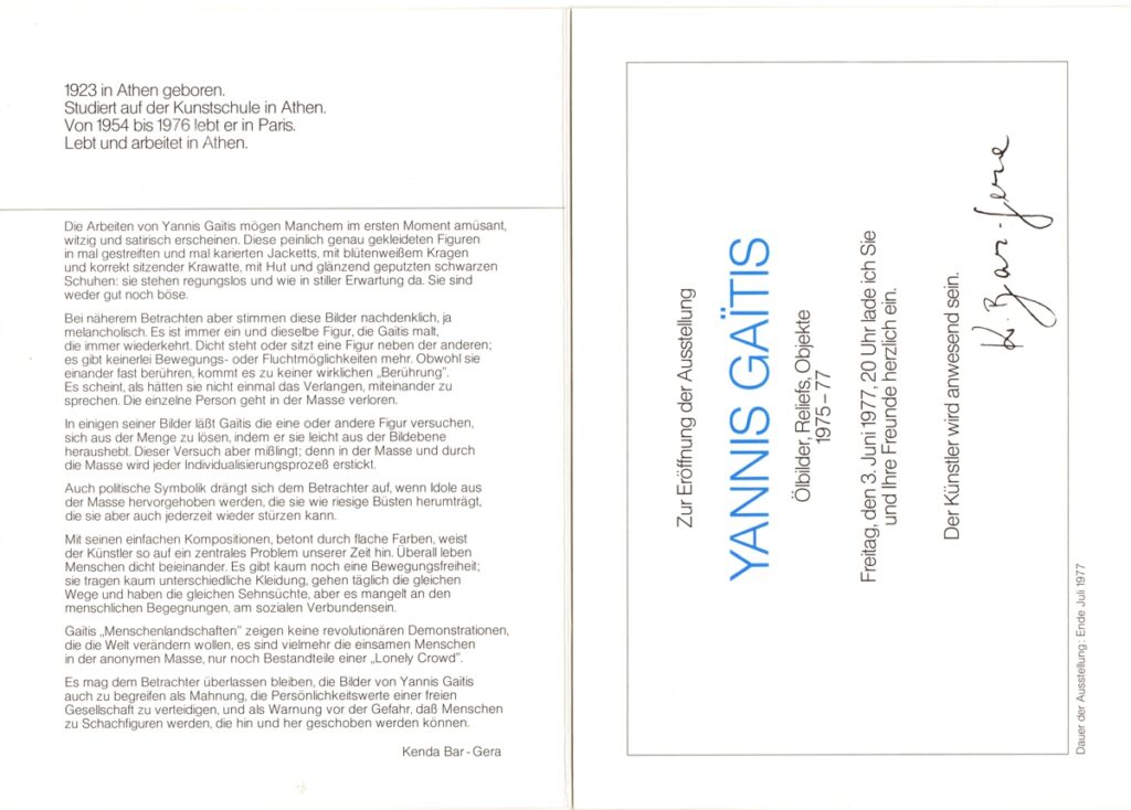 Andreou Kostas (1917 - 2007) ; Fatouros Dimitris (1928 - 2020) ; Spiteri-Veropoulou Ioanna (1920 - 2000) ; Eugène Delacroix (1798 - 1863) ; Touyas Giorgos (1922 - 1994) ; Simossi Gabriela (1926 - 1999) ; Tsoclis Costas (1930) ; Sklavos Yerassimos (1927 - 1967) ; Άγγελος Αγγελόπουλος (1904 - 1995) ; Kontopoulos Alekos (1904 - 1975) ; Mylonas Alex (1923 - 2016) ; Vyzantios Ntikos (1924 - 2007) ; Berto Lardera ; Valsamis Kostas (1908 - 2003) ; Gaitis Yannis (1923 - 1984) ; Le Corbusier (1887 - 1965) ; Georges Mathieu (1921 - 2012) ; Theodoros (Papadimitriou) (1931 - 2018) ; Takis (Vassilakis Panayiotis) (1925 - 2019) ; Victor Vasarely ; Philolaos (Tloupas) (1923 - 2010) ; Kessanlis Nikos (1930 - 2004) ; Kriezi Tita (1930 - 2021) ; Lyberaki Aglaia (1923 - 1985) ; Maltezos Yannis (1915 - 1987) ; Molfesis Iasson (1925 - 2009) ; Paniaras Kostas (1934 - 2014) ; Karras Kostas (1936 - 2012) ; Γιώργος Βαφειάδης