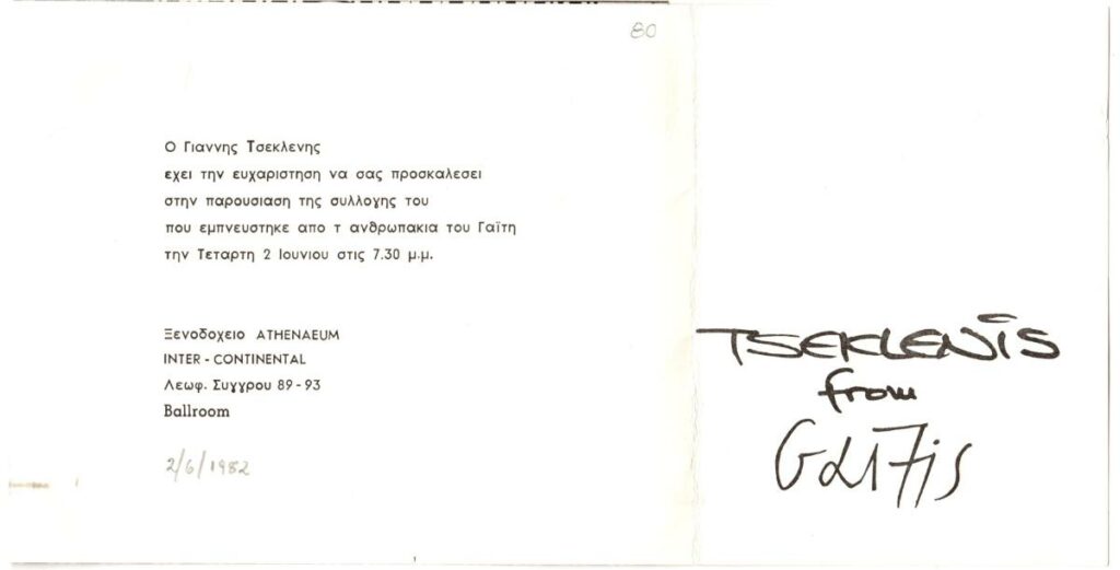 Invitation to a presentation of a collection by Yannis Tseklenis inspired by “People” by Yannis Gaitis.