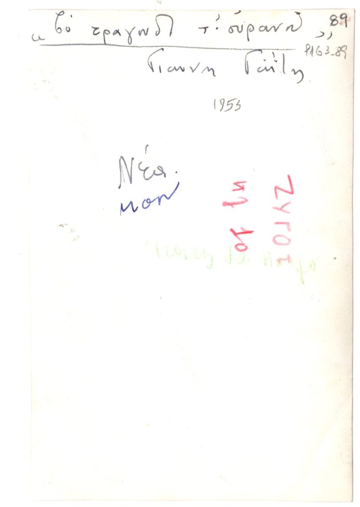 Andreou Kostas (1917 - 2007) ; Spiteris Tonis (1910 - 1986) ; Spiteri-Veropoulou Ioanna (1920 - 2000) ; Kyriakos Rokos (1945) ; Yannis Grammatikopoulos (1928) ; Gaitis Yannis (1923 - 1984) ; Sonia Kalogeropoulou (1945 - 2003) ; Giorgos Vogiatzis (1935 - 1993) ; Christos Sarakatsianos (1937 - 2022) ; Δημήτρης Γραμματικόπουλος