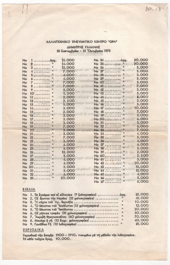 Parthenis Konstantinos (1878 - 1967) ; Kontoglou Fotis (1895 - 1965) ; Michalis Tompros (1889 - 1974) ; Galanis Dimitrios (1879 - 1966) ; Konstantinos Maleas (1879 - 1928) ; Papaloukas Spyros (1892 - 1957) ; Mitarakis Yannis (1898 - 1963) ; Τεν Φλωριάς (1897 - 1969) ; Sofia Laskaridou (1876 - 1965) ; Flora-Karavia Thaleia (1871 - 1960) ; Kefallinos Yannis (1894 - 1957) ; Γεώργιος ο Αθηναίος Δημητριάδης (1880 - 1941) ; Νικόλαος Δραγούμης ; Zevgolis Grigorios (1886 - 1950) ; Kogevinas Lykourgos (1887 - 1940) ; Δημήτριος Μπισκίνης ; Γεώργιος Οικονόμου