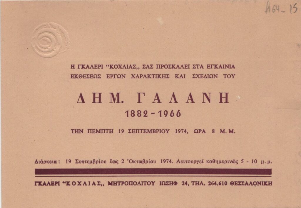 Invitation to the opening of the artist’s retrospective exhibition featuring engravings and drawings, held in Thessaloniki.