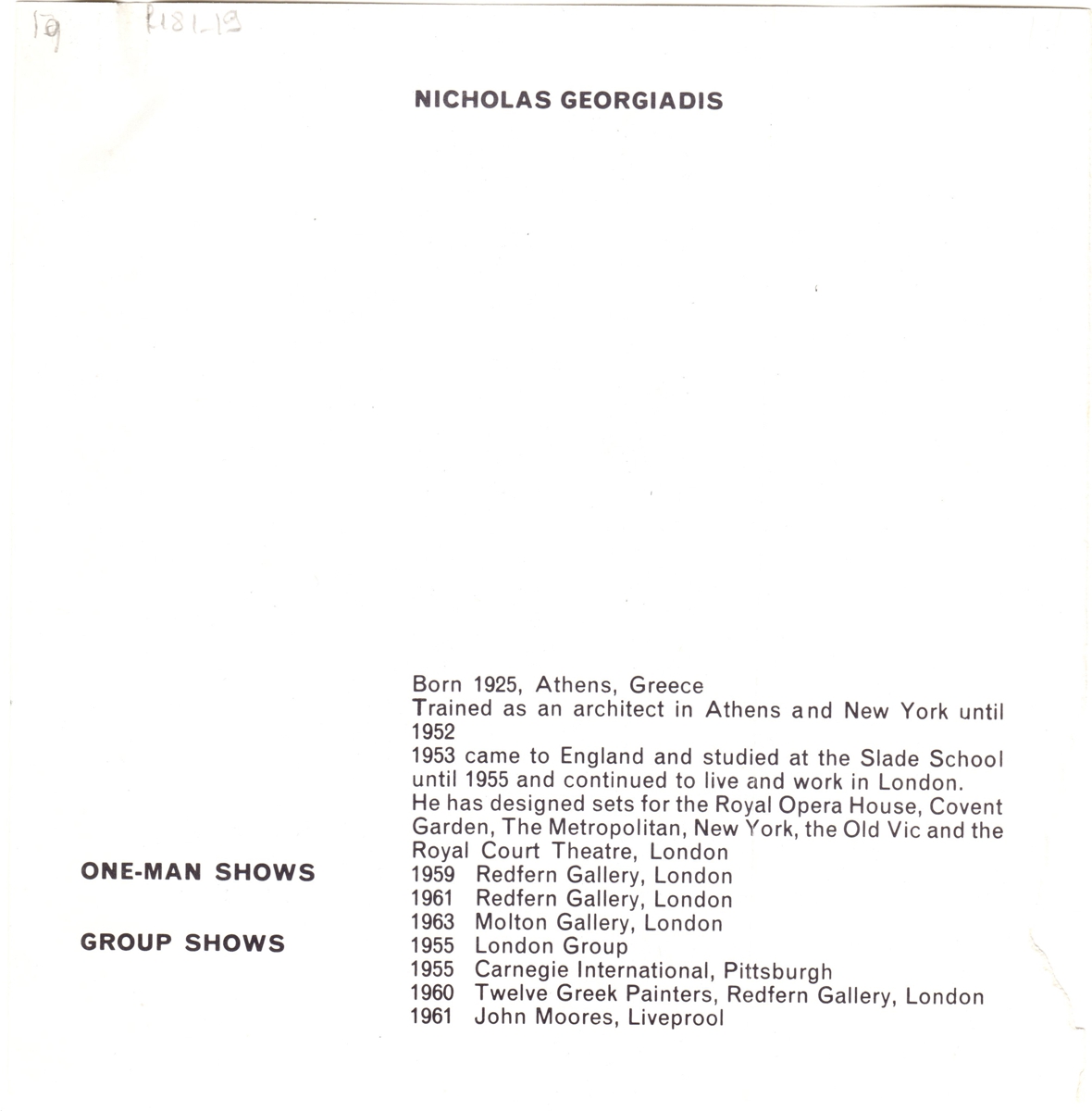 Georgiadis, Nicholas (1925 - 2001) - Artist