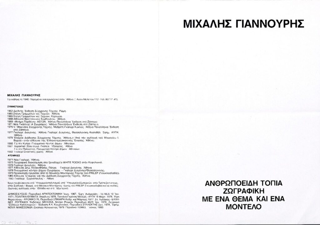 Poster for a solo exhibition by Mihalis Giannouris at the Eggonopoulos Gallery in Athens.