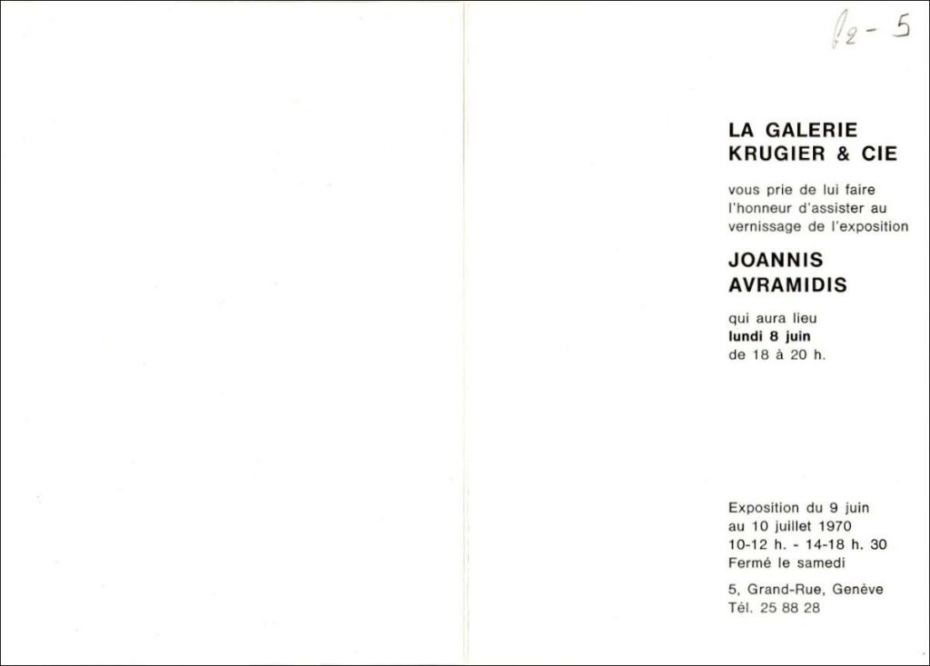 Fatouros Dimitris (1928 - 2020) ; Raftopoulou Bella (1902 - 1992) ; Pavlos (Dionyssopoulos) (1930 - 2019) ; Sachinis Nikos (1924 - 1989) ; Fassianos Alekos (1935 - 2022) ; Tsoclis Costas (1930) ; Christos Kapralos (1909 - 1993) ; Sklavos Yerassimos (1927 - 1967) ; Antonakatou Diana (1922 - 2011) ; Zongopoulos Giorgos (1903 - 2004) ; Achilleas Aperghis (1909 - 1986) ; Mylonas Alex (1923 - 2016) ; Koulentianos Kostas (1918 - 1995) ; Avramidis Ioannis (1922 - 2016) ; Mytaras Dimitris (1934 - 2017) ; Theodoros (Papadimitriou) (1931 - 2018) ; Karas Christos (1930 - 2023) ; Δανιήλ Δανιήλ (1914 - 1988) ; Philolaos (Tloupas) (1923 - 2010) ; Pappas Giannis (1913 - 2005) ; Μαριλένα Κλωνάρη ; Loucopoulos, Clearchos (1906 - 1995) ; Lyberaki Aglaia (1923 - 1985) ; Nikolaidis Giorgos (1924 - 2001) ; Stephopoulos Thanasis (1928 - 2012) ; Γιάννης Κοντός ; Μήτσος Ευθυμιάδης ; Κώστας Κηλαηδόνης (1940) ; Gerda Schmidt-Panknin